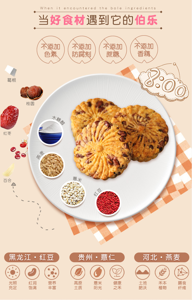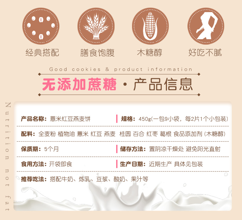 天猫健元堂旗舰店26元,可领5元优惠券,实付21元到手,这款健元堂 薏米红豆燕麦饼干,采用全麦粉、植物油、薏米、红豆、燕麦、桂圆、百合、红枣、葛根、木糖醇制成,全是粗粮、杂粮,不添加蔗糖,脂肪含量低,还有防腐剂、香精,健康,营养丰富,当饱,适合立志于瘦身的人士,规格是450g。领券链接点此