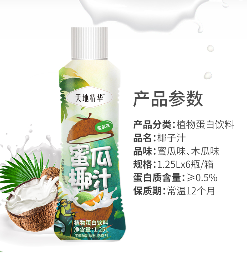 天猫天地精华旗舰店99.9元,可领50元优惠券,实付49.9元到手,规格为1.25L*6瓶。蜜瓜的香甜加上椰汁的奶香,混合在一起很好喝,我觉得还不错,不添加甜味剂和防腐剂,食用更加健康。