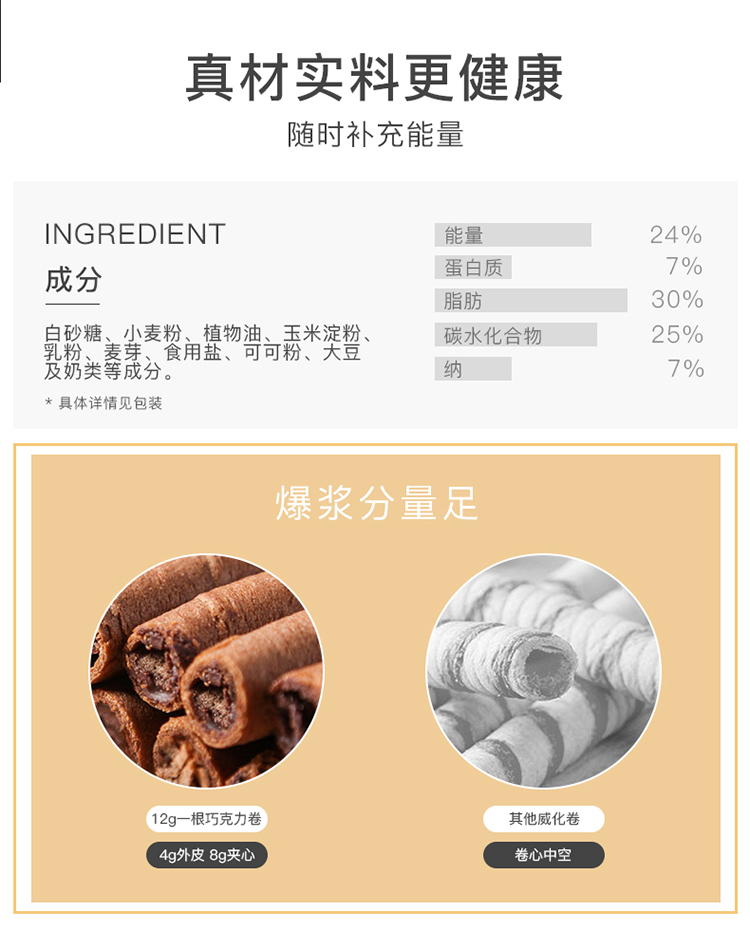 哇酥咔 爆浆威化卷,李佳琦推荐,印尼进口原装进口,精选优质小麦粉、乳粉、干酪、香浓咖啡豆,自然酥脆麦香浓郁,威化层层包裹,搭配爆浆巧克力夹心,口感酥脆香浓,正来自异国的美味,让人流连忘返。