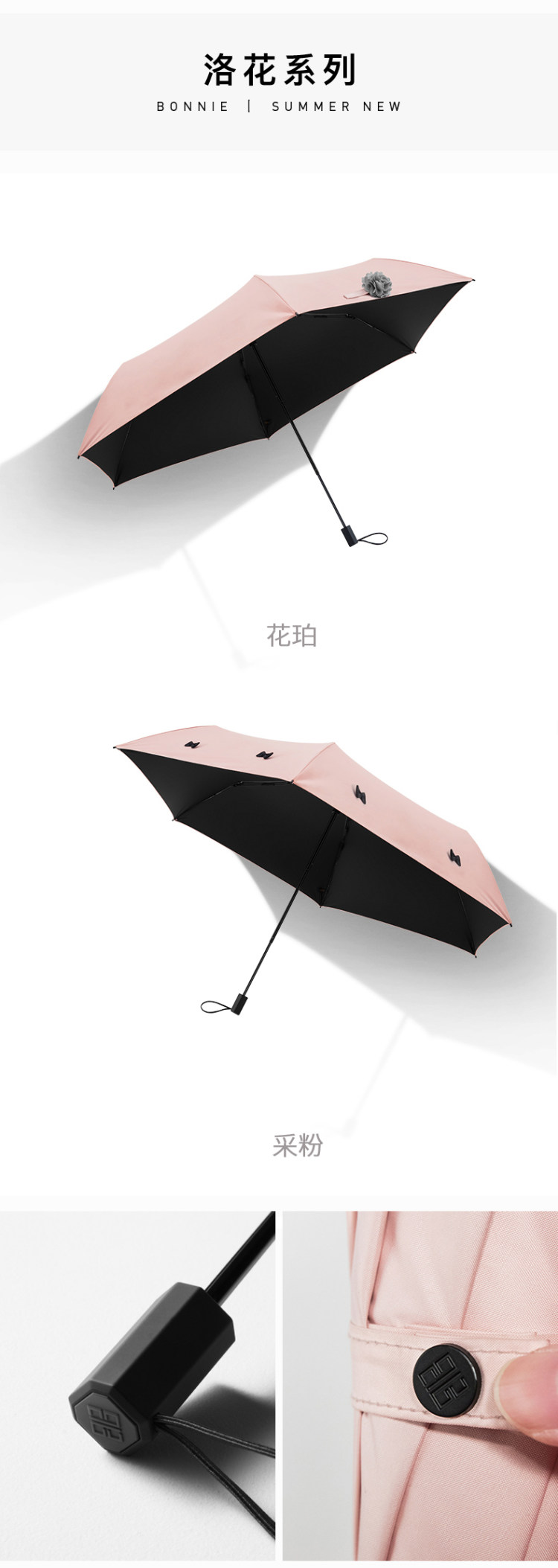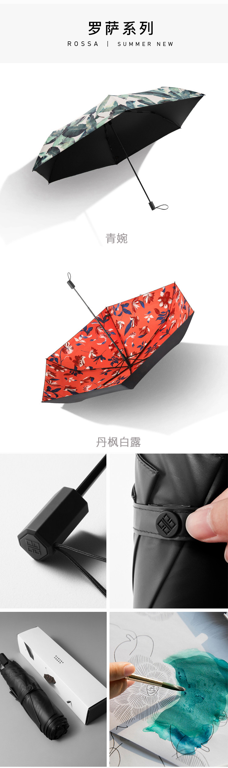 这款蕉下 洛花系列 花球三折伞,晴雨两用,绣球型的牡丹点缀整伞,显得高贵典雅,适合女性使用。由超细纤维制成的SSV-Polyester Fibre伞布,配合水压高针密织,和LRC纳米级涂层,对于紫外线的阻隔率为99%,超过行业标准的峰值系数UPF 50+,女性夏季出街必备。