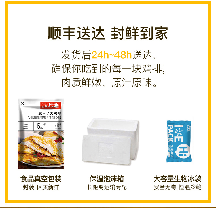 天猫大希地旗舰店88元,可领10元优惠券,实付78元到手,,还可参加店内满减,拍2件126元更划算,下单包顺丰,一件包含135g*10片,2.7斤。这款是半成品鸡排,到手后需要自己简单煎制。