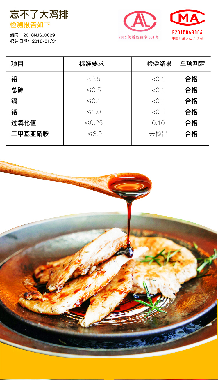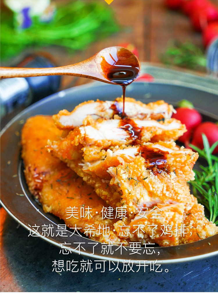 这款大希地忘不了鸡排,选用通过国家食品安全检查的优质鸡肉,经过捶打松肉和香料微腌制,口味甜香带辣,不油不腻,经过制作后,肉质鲜嫩,口感弹滑,可直接煎制、裹粉炸制或当做炒菜的肉使用。