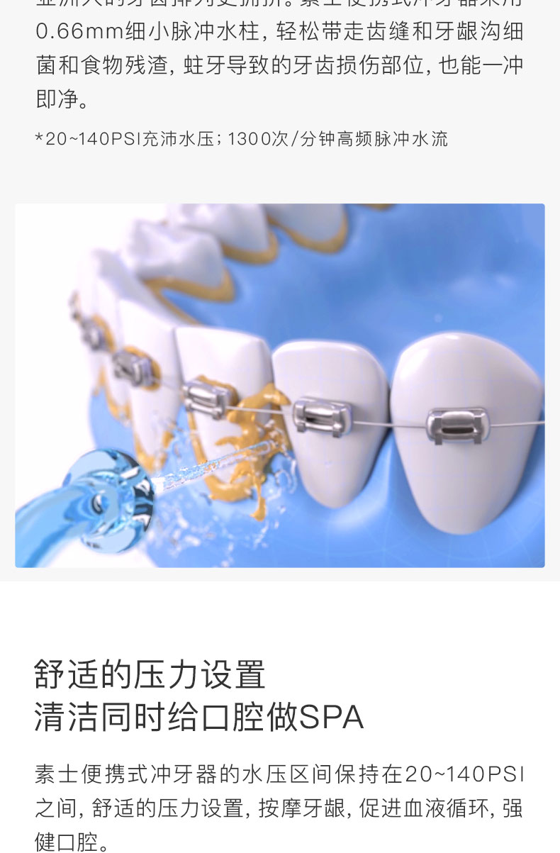 水牙线是通过水压和脉冲水流的结合,来深层清洁牙龈和牙齿之间的缝隙,比普通牙刷牙线和空气牙线清理更加干净,经常使用可以避免牙菌斑及牙龈出血,补充了普通牙刷的不足,尤其是清理因为佩戴牙套、有食物残渣的牙齿时,特别好用,会有种发现新天地的感觉。