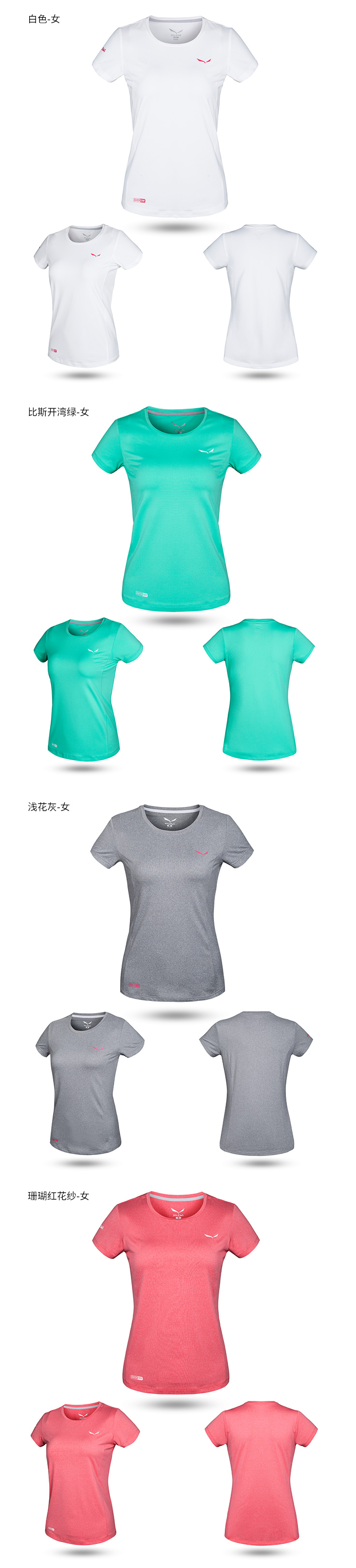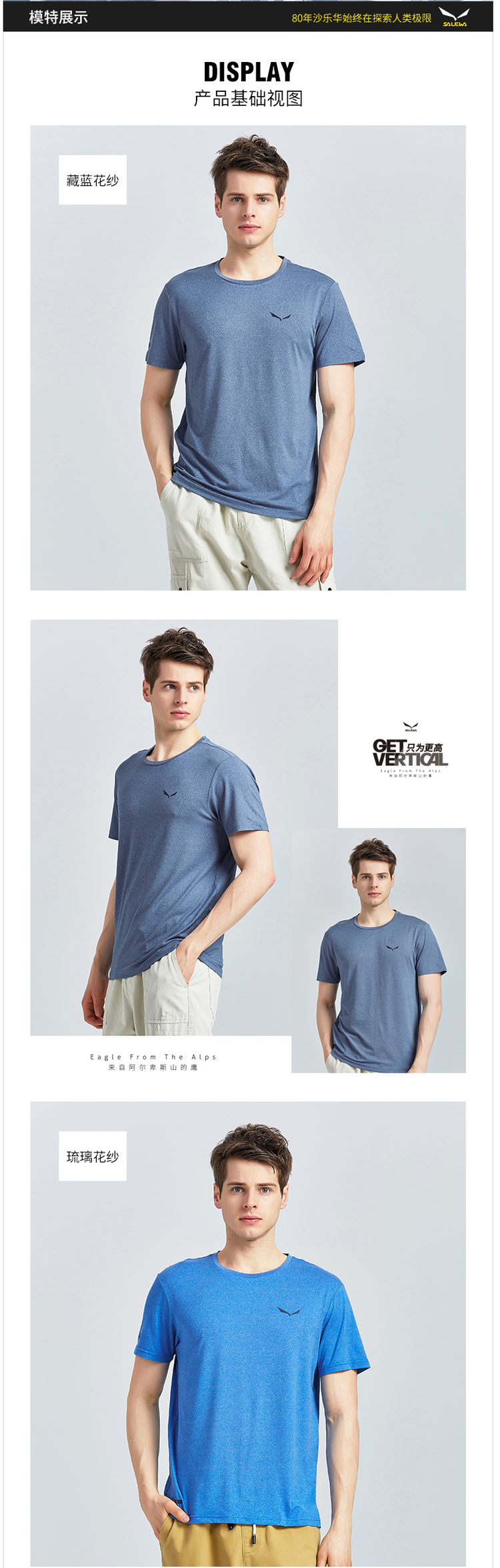 这款T恤是沙乐华2018年专柜新款,属于Trekking徒步系列,定位是日常通勤、徒步旅行穿着。面料选用92%阳离子涤纶、8%氨纶混纺而成,传统汗布织法,阳离子涤比传统涤纶具有更好的柔软、透气、吸湿性。