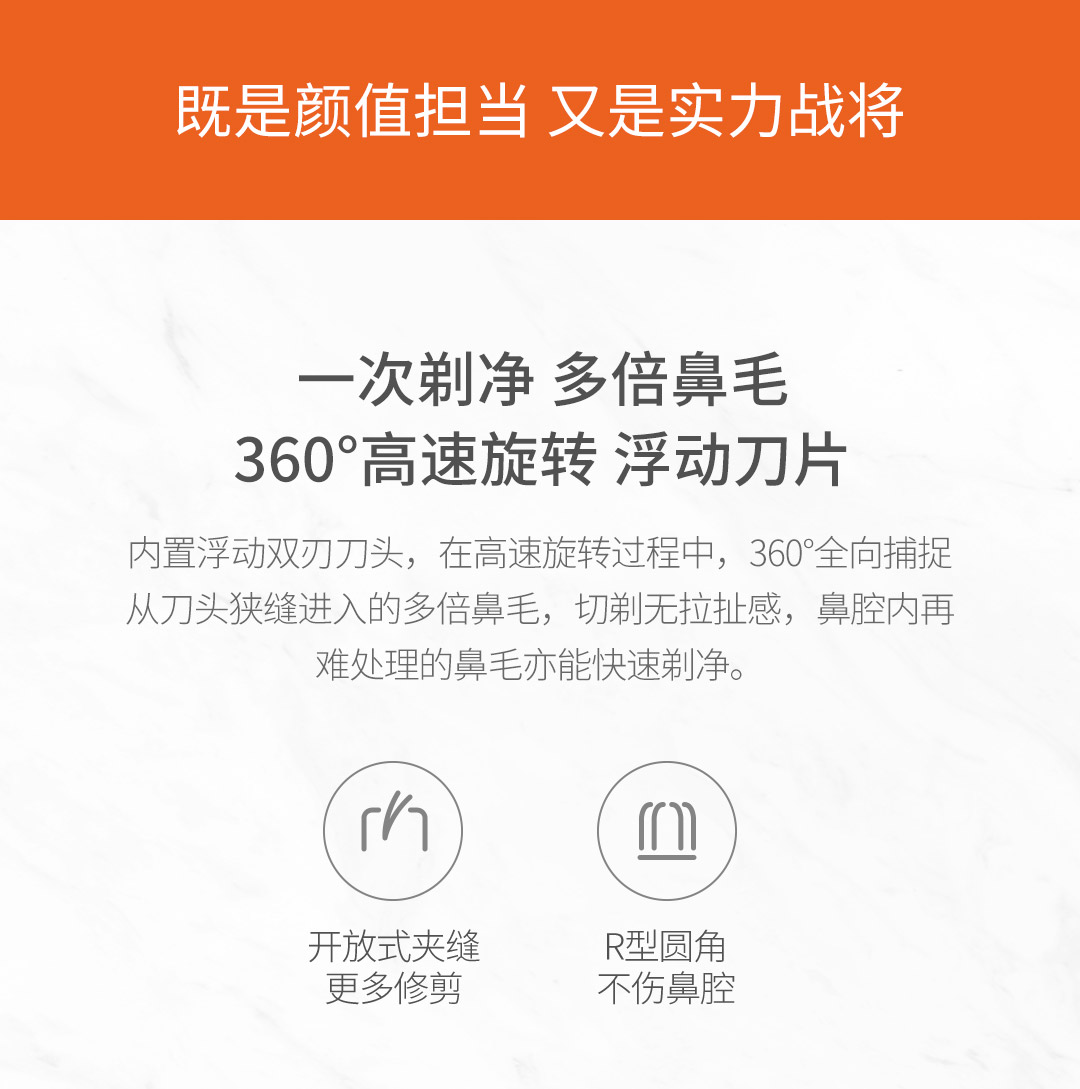 天猫小适旗舰店46.9元,可领15元优惠券,实付31.9元到手,小米生态链企业出品,内置减噪微型马达,扭力大、转速高,轻松应对浓密鼻毛;悬浮双刃刀头设计,无拉扯感,清理干净迅速。R型圆角设计,不伤鼻腔。可拆卸水洗,小巧便携。