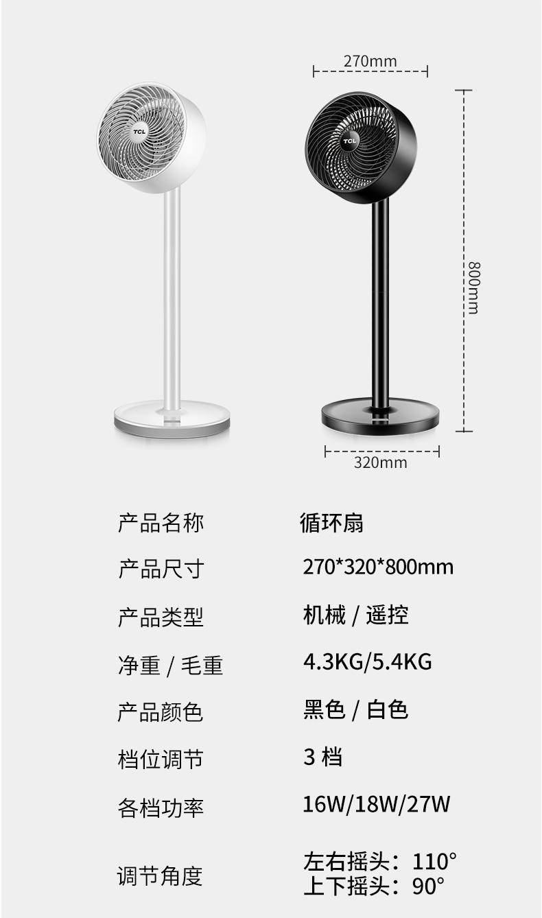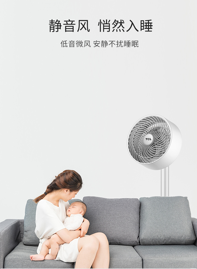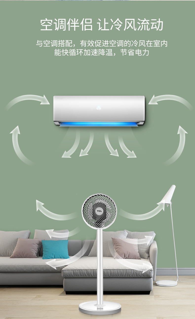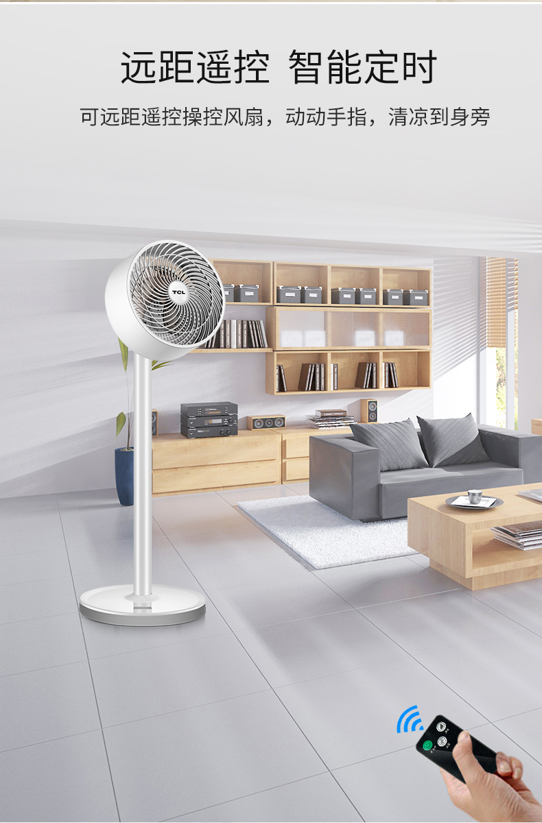 TCL立式空气对流循环扇,可上下左右独立摇头,最远风力能达到6m,远距柔风,久吹不头疼,3档风速调节,支持远程遥控,低噪音不扰眠,四季通用。