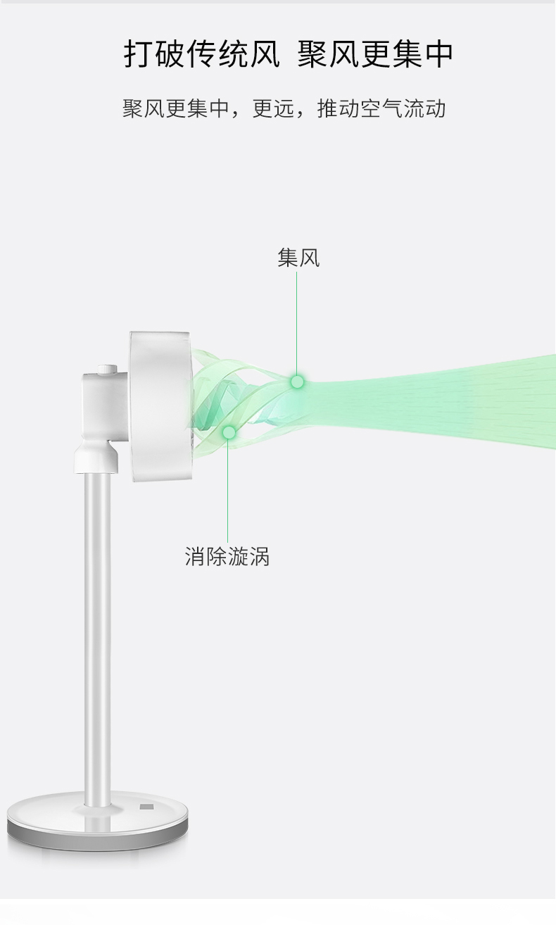 作用原理:普通风扇是单纯的利用叶片快速转动,使风扇面前的空气快速流动,使人体表面水分蒸发,吸收热量,从而让人体感到凉爽;空气循环扇主要作用是将室内空气形成对流循环,以合理的空气流向达到平衡温度的效果。