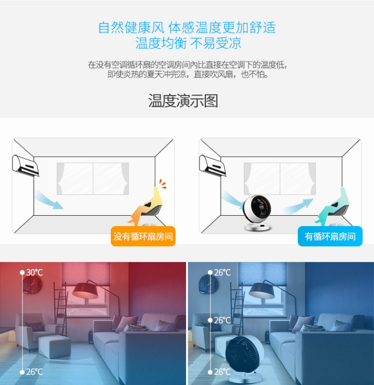 =49元 到手价,历史低价。机械款此价,还有遥控款。空气循环扇能够迅速地聚集气流,将聚集的气流喷射出去,遇到障碍物后气流扩散,从而产生了空气循环气流。也就是说对着人吹是没有传统风扇的伤害的,特别适合宝宝、老人使用,与空调搭配使用,最赞了。