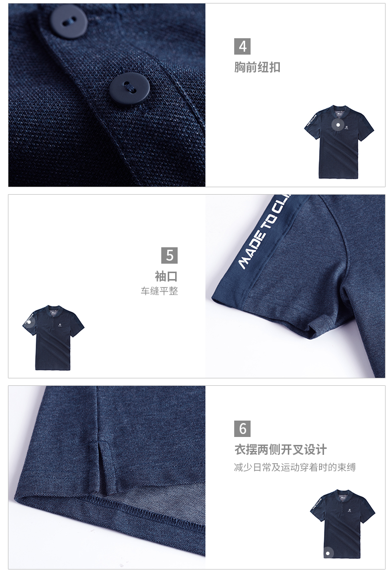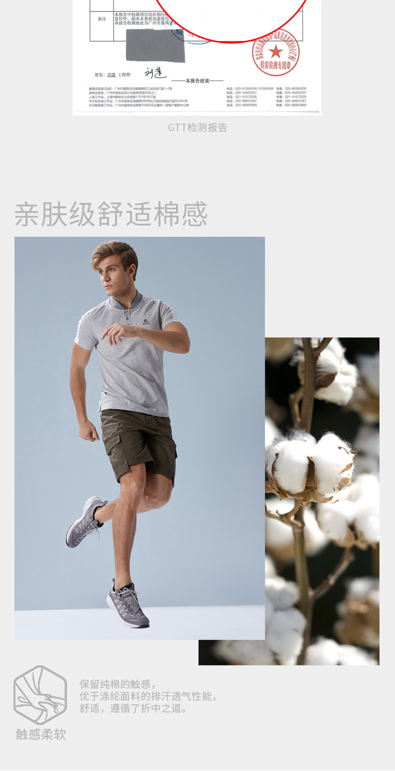 在速干的基础上保留了纯棉的触感,柔软舒适,速干性又高于一般聚酯,简约的小太阳标志,简单立领设计,彰显年轻活力,衣摆两侧开叉设计,减少穿着中的束缚。