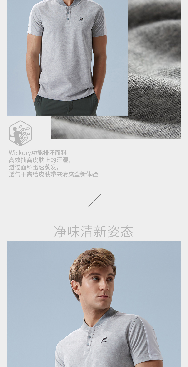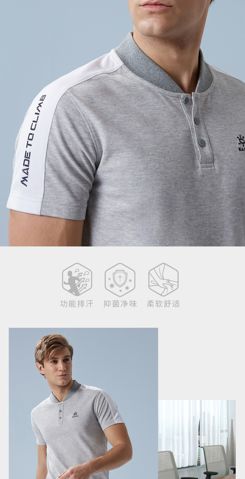 =152.06元 到手价,这是凯乐石的小立领polo,主要功能是快速排汗、持久抑菌驱味、棉质柔软触感。