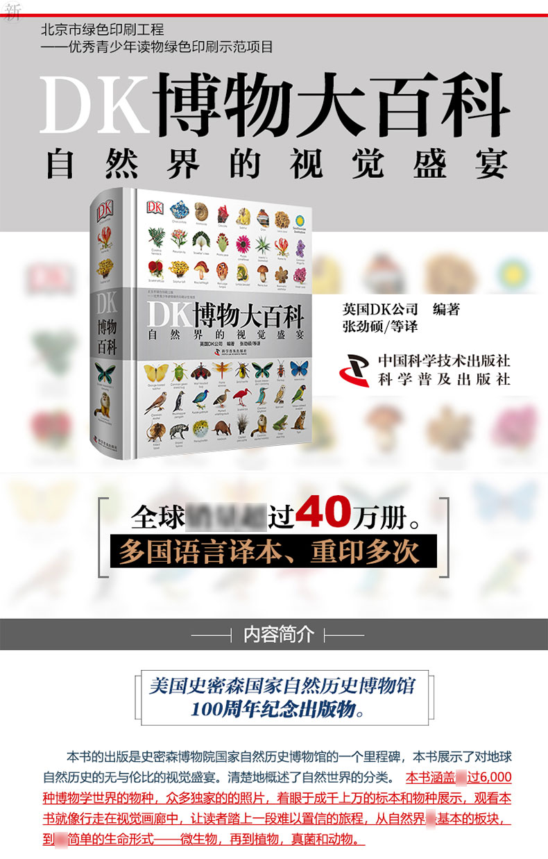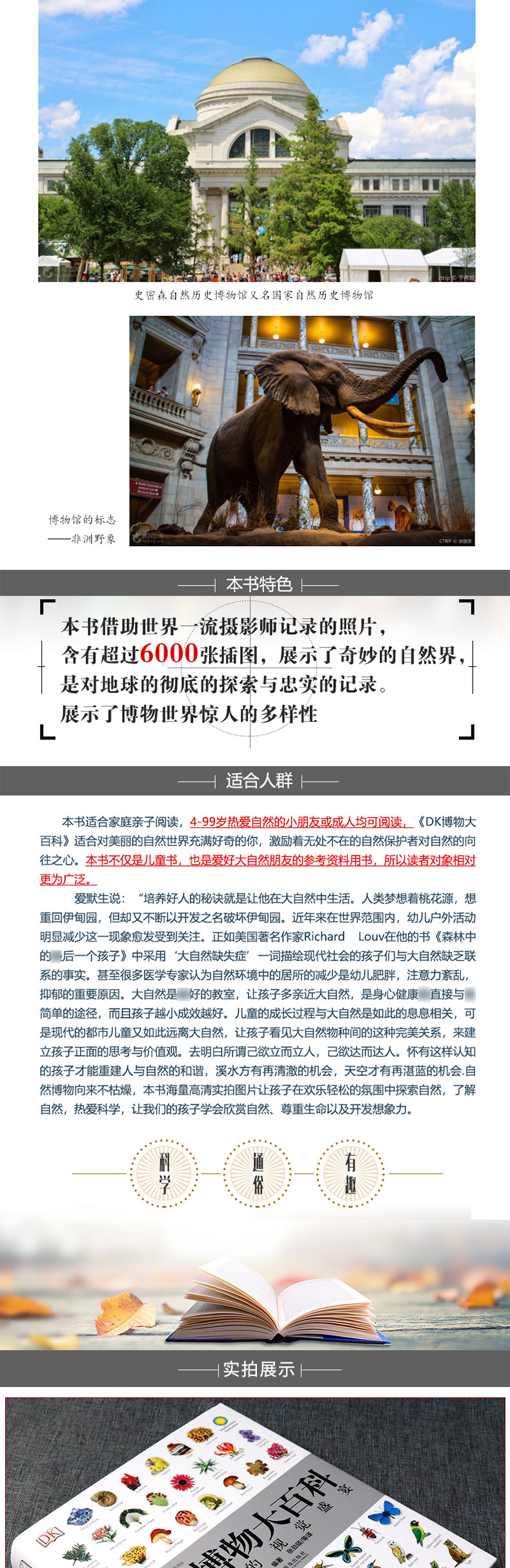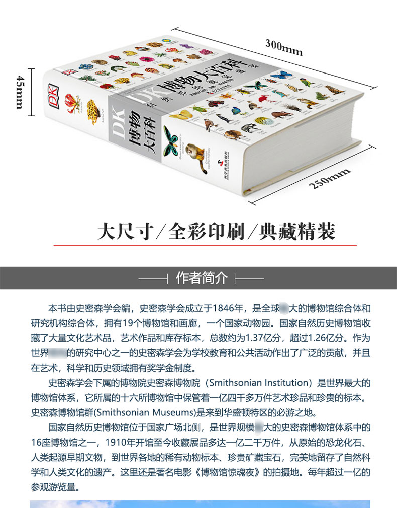 美国史密森国家自然历史博物馆100周年纪念出版物,权威性极高,是博物类出版物中的重量级作品,英文版原著书名为《The Natural History Book》。