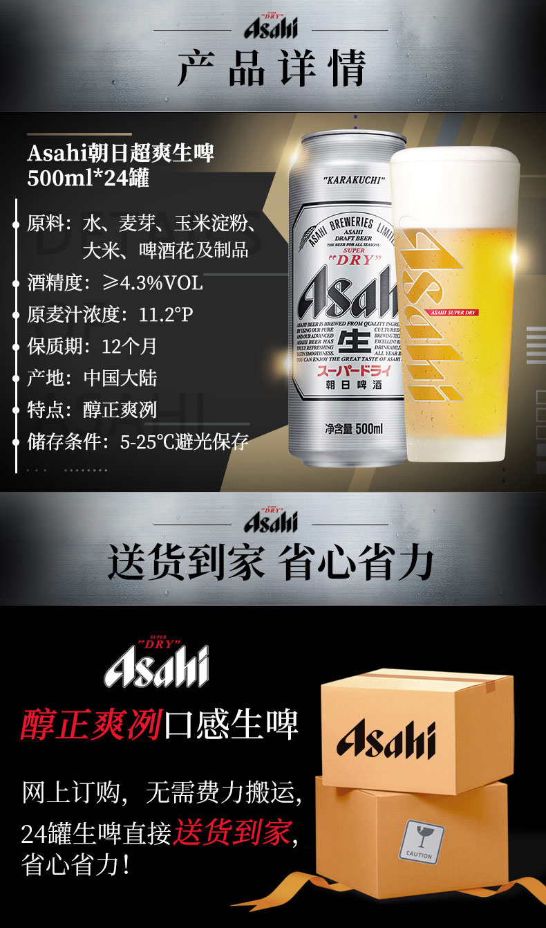 天猫asahi朝日旗舰店189元,可领50元优惠券,实付139元到手,同款便利店8元/罐,口味清爽,我喝着感觉不错。