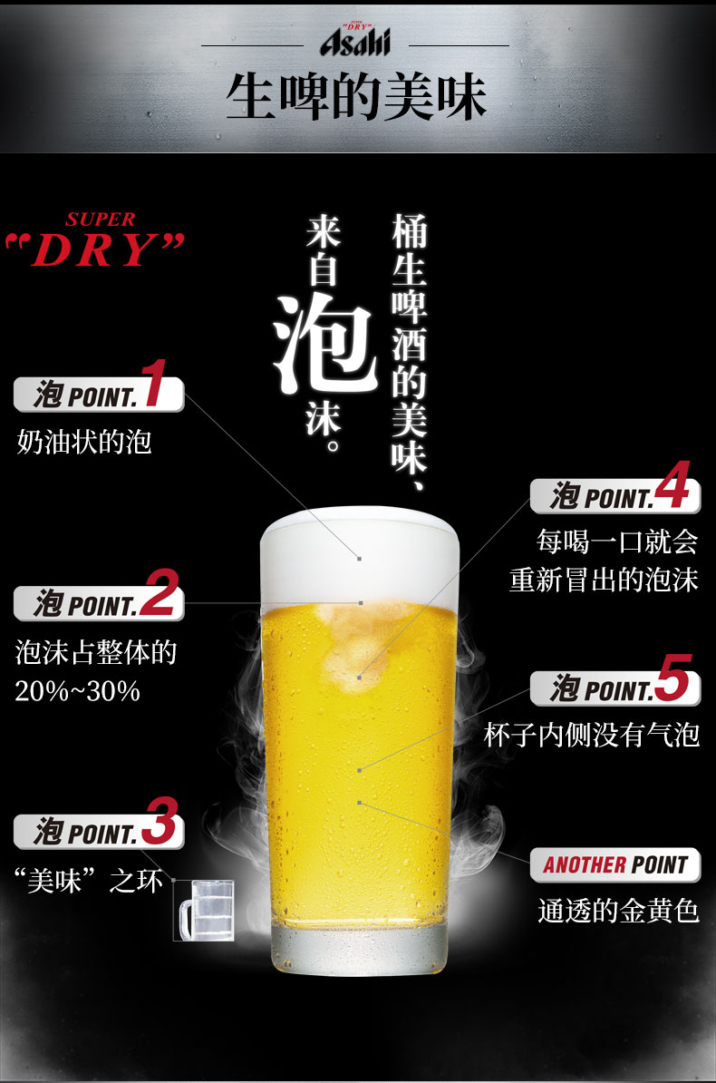 朝日啤酒成立于1889年,在1987年推出的生啤帮助其跃居日本第一、世界第三的啤酒品牌,其中这款生啤的销售量全球第一。