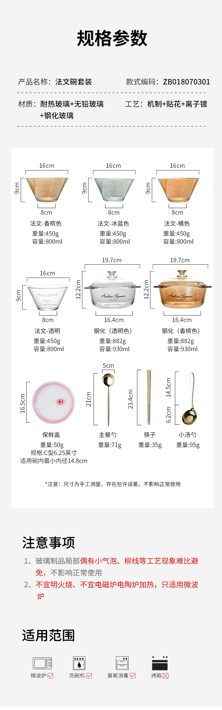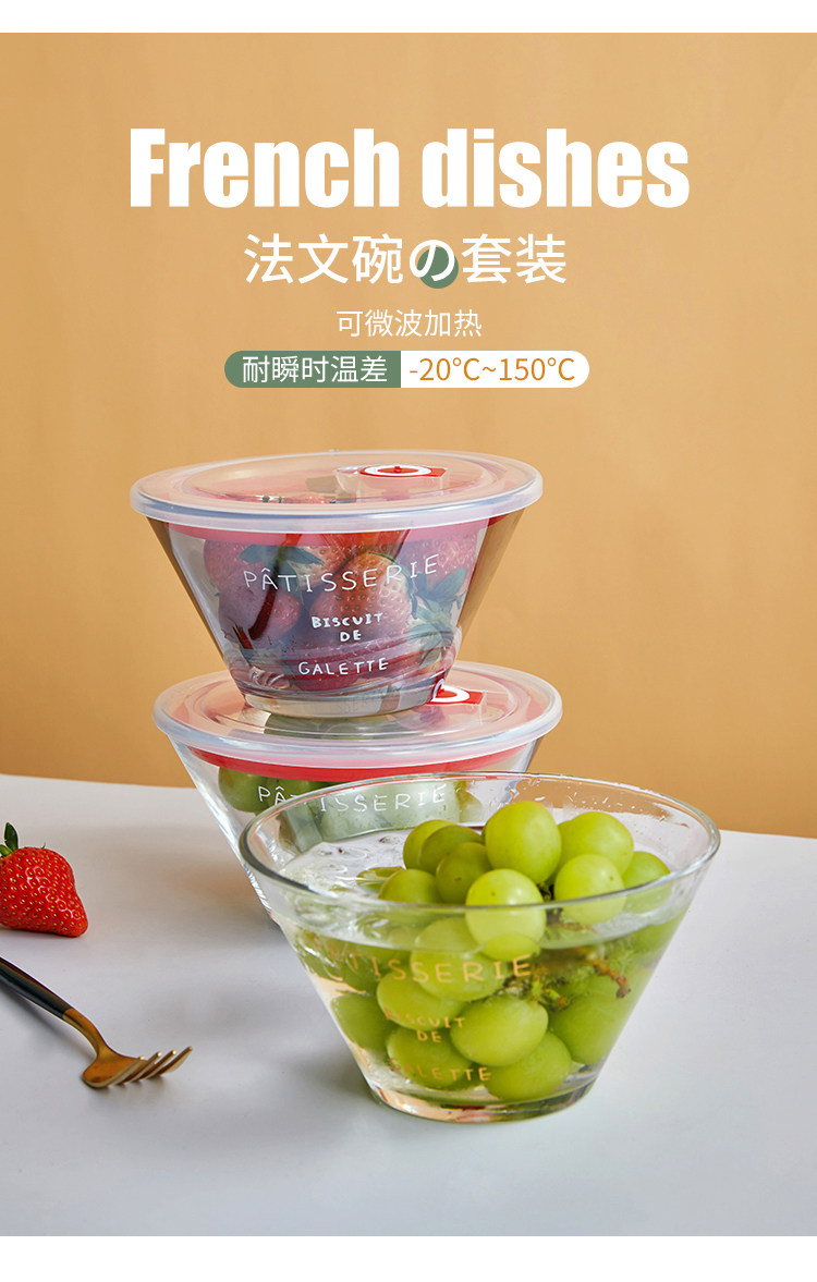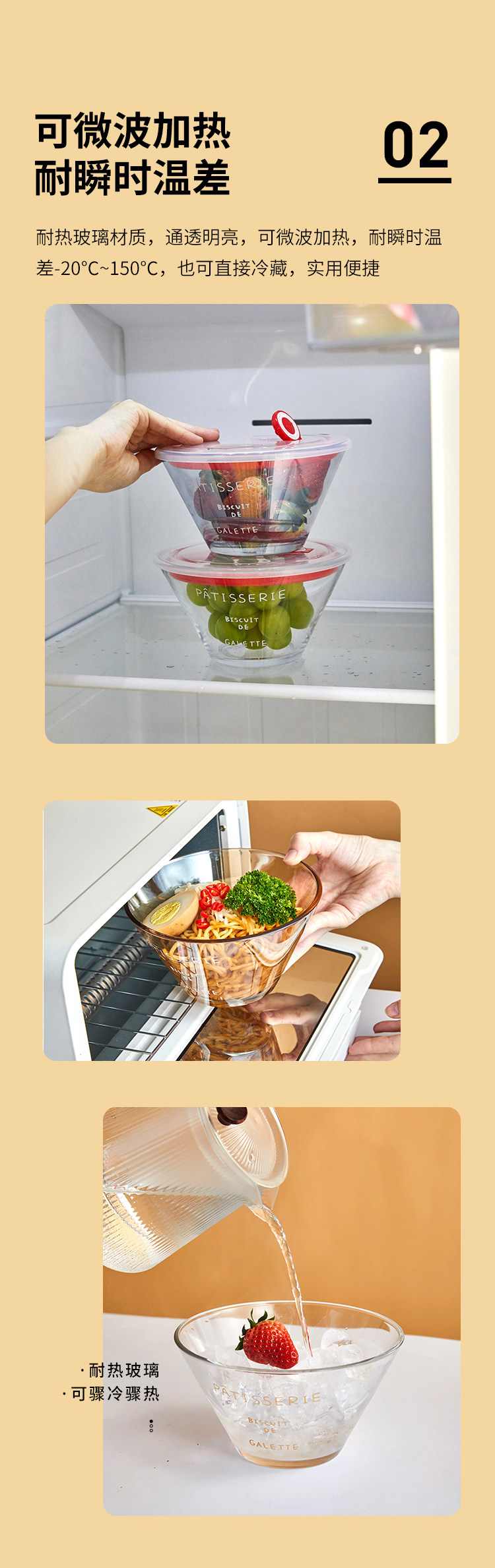 这款玻璃碗使用无铅玻璃为主材质,别致斗笠造型,碗口圆润曲线流畅,手感舒适,小清新字母装饰,晶莹剔透,用途多样。耐热玻璃材质,能承受-20℃~150℃的骤热骤冷环境。