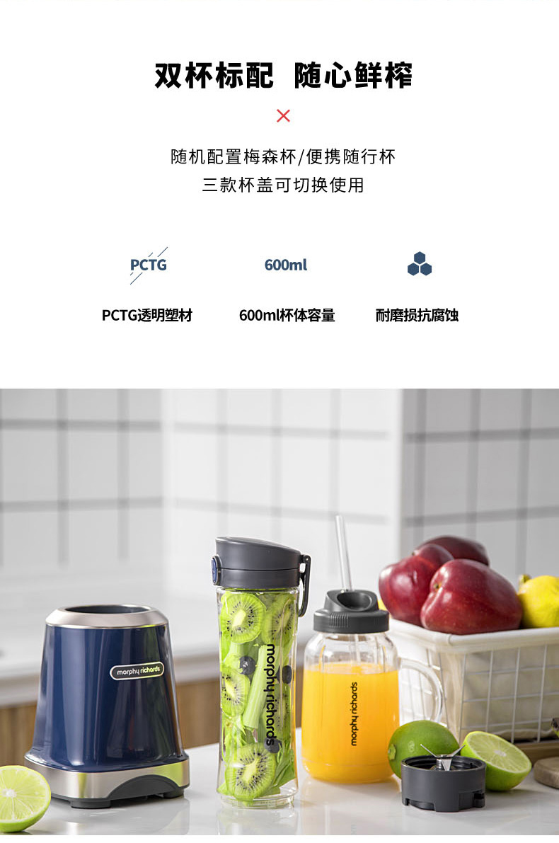 这款摩飞 榨汁机,24000转/分钟,功率300W,机身采用ABS材质,按压旋转,连锁设计,对准机身位置,旋扣锁位,机身稳定转动;食品级不锈钢立体刀头。强大动力,打出的果汁口感细腻,保留营养。