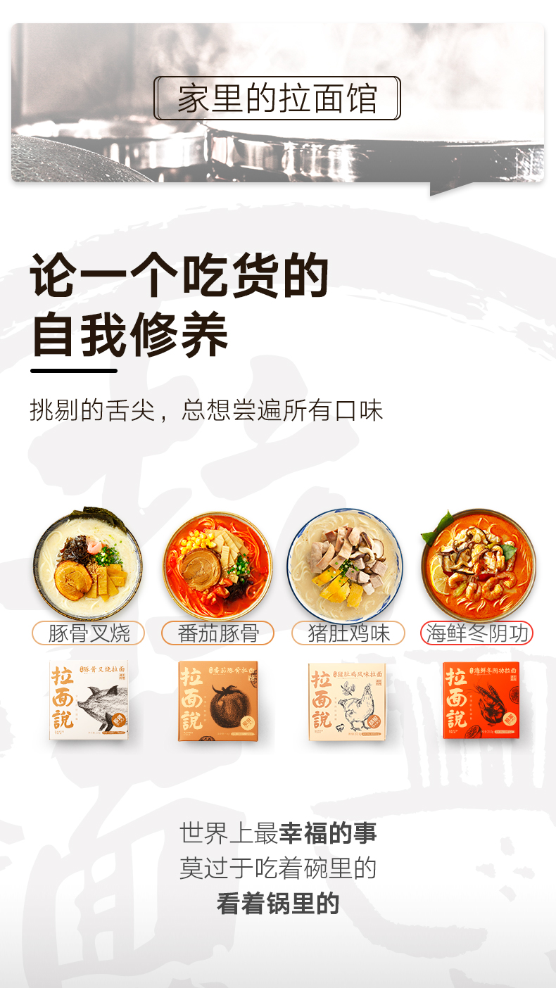 天猫拉面说旗舰店74.9元,可领5元优惠券,实付69.9元到手,共有4个口味,共936g。