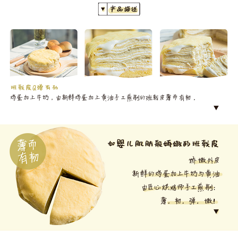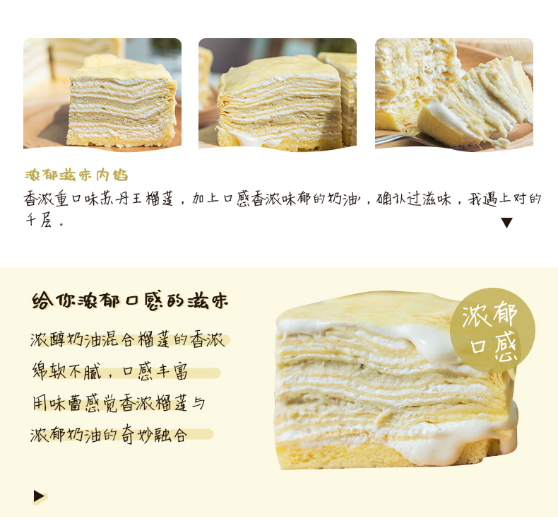 天猫巧师傅旗舰店119元,可领50元优惠券,实付69元到手。这款苏丹王榴莲千层蛋糕,传承法式榴莲千层工艺,选用高品质苏丹王榴莲果肉,搭配口感浓郁的奶油,配以爽口的牛奶、新鲜的鸡蛋和黄油,配以爽口的椰果,鲜甜脆爽,外层是手工煎制的班戟皮,娇嫩弹韧,一口咬下去口感绵密,层次丰富,香甜可口。规格:6寸 500g。