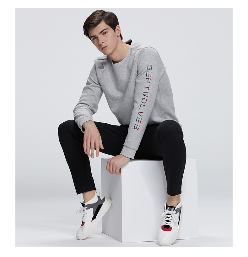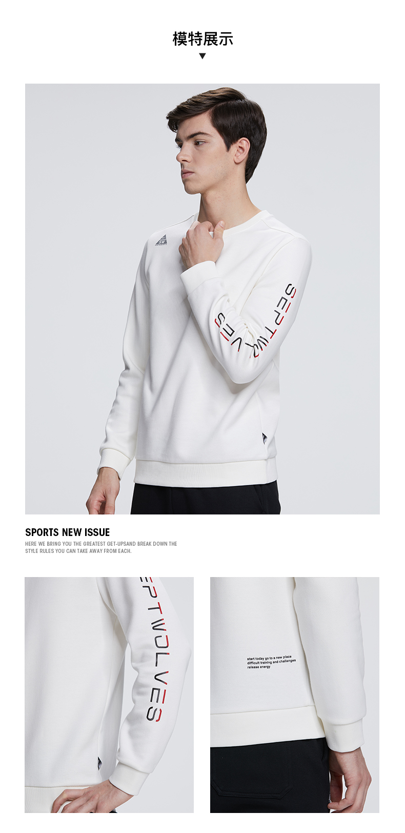 这款七匹狼男针织卫衣,2020春季新款,采用62.3%棉+37.7%聚酯混纺的抽针罗纹面料,摸起来柔软光滑,肌理感强、透气性好,即使在运动时也不会有闷热潮湿感。