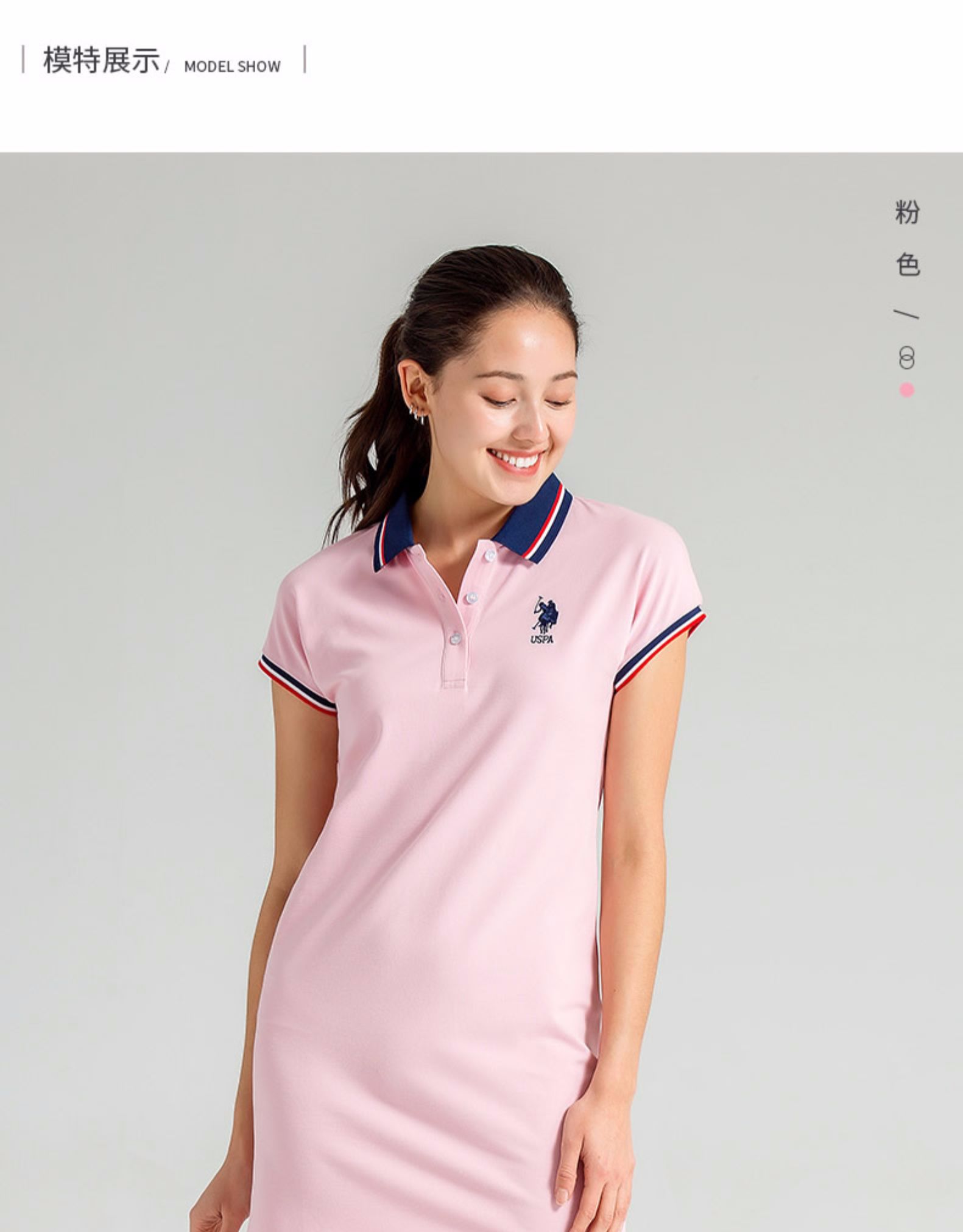 这款POLO领连衣裙,4种颜色可选,H版型设计,结合了女生的身形,在腰部微收裙摆微张。呈现了俏皮的A-LINE,穿上身不会显得单调扁平化,比一般修身款遮肉显瘦效果好很多。裙长刚好到大腿中部以下膝盖以上,不会太短,也不要担心走光。也不会太长压个子,是打造长腿效果的好搭档。