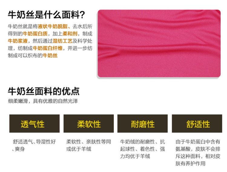这款T恤采用牛奶丝速干面料,一直从牛奶中提起出来的再生纤维,从液态牛奶里提取蛋白质掺入到柔和剂中,再通过湿纺工艺制成的速干面料,特点上类似于桑蚕丝,富含蛋白质氨基酸,能滋养皮肤,有弹性。