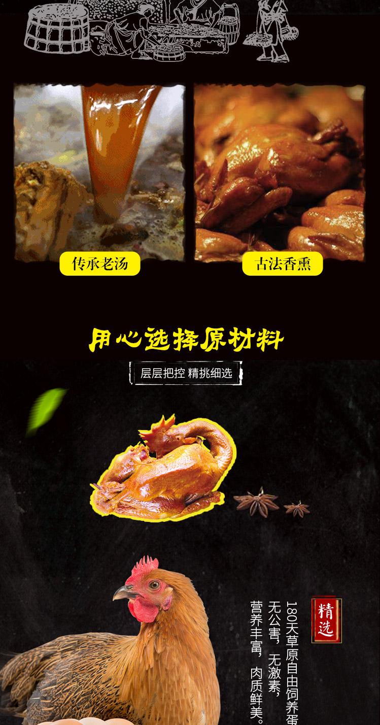 “卓资熏鸡”是内蒙古自治区乌兰察布市卓资县的传统名食,制作加工有近百年的历史,用卓资县本地特产红羽边鸡为上好原料,佐以三十多味中草药,老汤慢火熬煮丝丝入味,在经冰糖柏木高温熏蒸而成。曾在1956年全国熟制品展览会上与德州扒鸡、道口烧鸡同誉为全国三大名鸡。