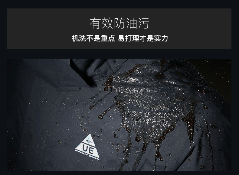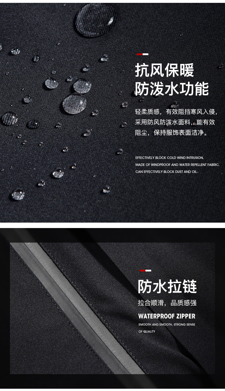 在款式上,合体版型,立体剪裁,上身效果好,无拖沓感。使用防水拉链,避免水汽的入侵。做工上,下摆走线工整,无线头、毛边和开线。