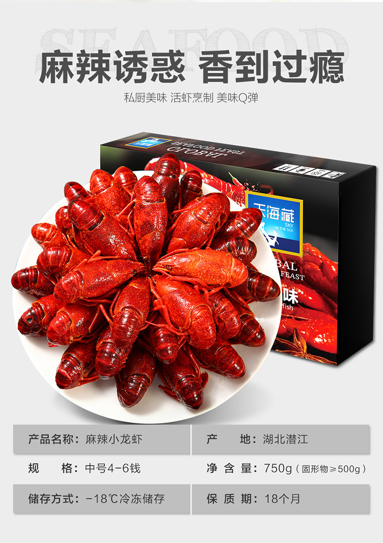这款天海藏即食麻辣小龙虾 750g*3件,活虾烹制,大师调味,鲜香麻辣,美味Q弹,浓香四溢,饱满多汁。