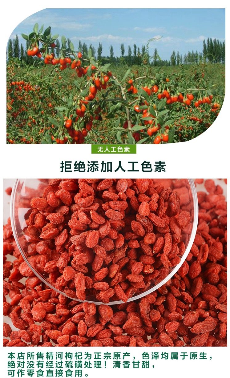 这款枸杞是店家自己家种植的,用的是有机肥,不打农药,无任何加工保证无染色无硫磺熏,可接受检验,店家承诺不满意可以无条件退货,运费算店家的。