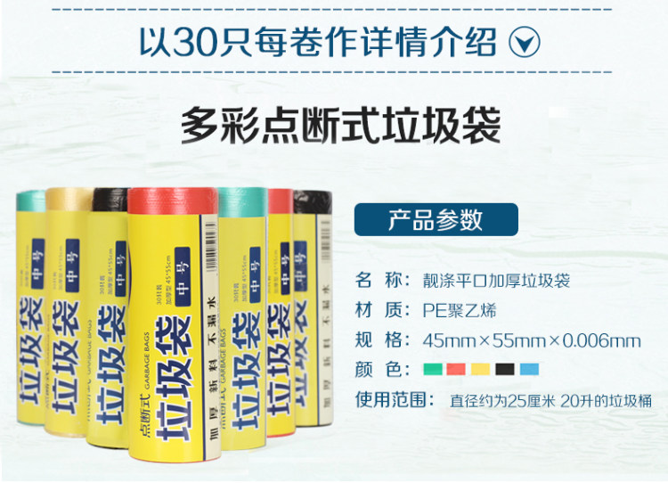 天猫靓洁家居专营店5.8元,可领2元优惠券,实付3.8元到手。第三款此价,白菜价,靓涤垃圾袋,5卷共100只,环保无异味,光泽度好,韧性十足,加大加厚不漏水,承重可达20斤,断点设计,方便快捷,超实用,居家必备,尺寸为:50*45cm。
