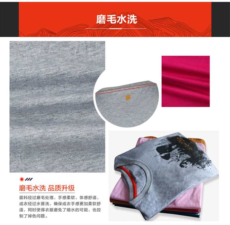 这款T恤选用新疆长绒棉,面料未经过化学处理,留有纯棉表面绒绒的质感,手感更柔软;在版型和款式上,男直筒/女修身,立体剪裁,胸前有印花,袖口是弹力包边,后领是撞色防变形捆边,保证领口不松懈变形。