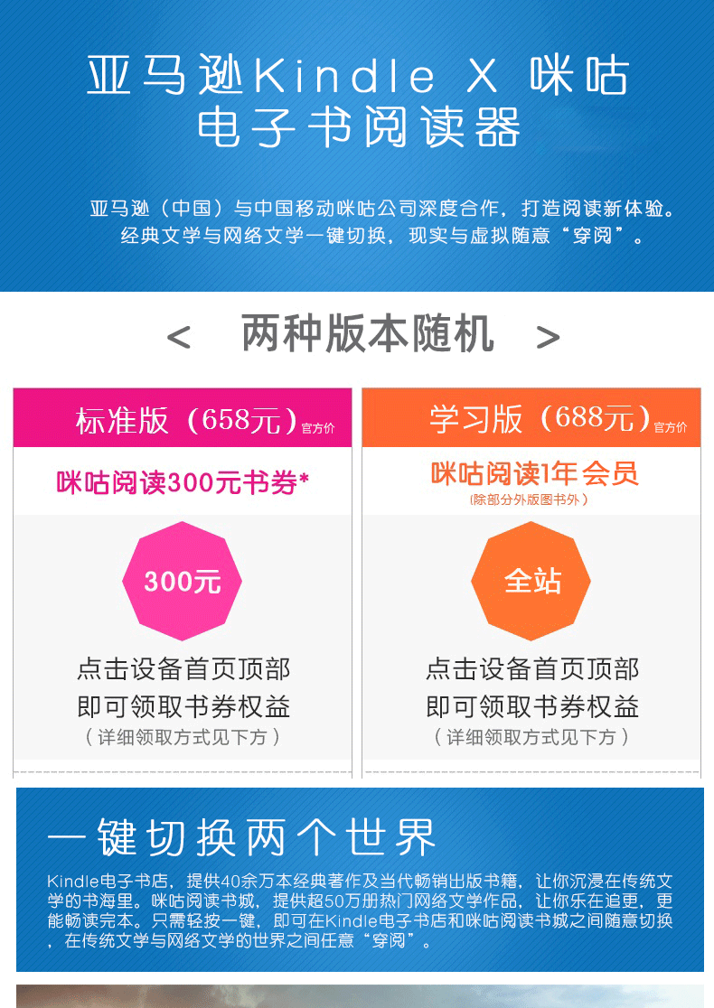天猫锦读数码专营店468元到手,咪咕官方的活动,之前已经在微信公众号官宣了,这家店提前放货,与官方相比还多了个保护套和各种读书资源,到手后省了自己找了,而且还能淘金币抵扣+花呗3期免息。