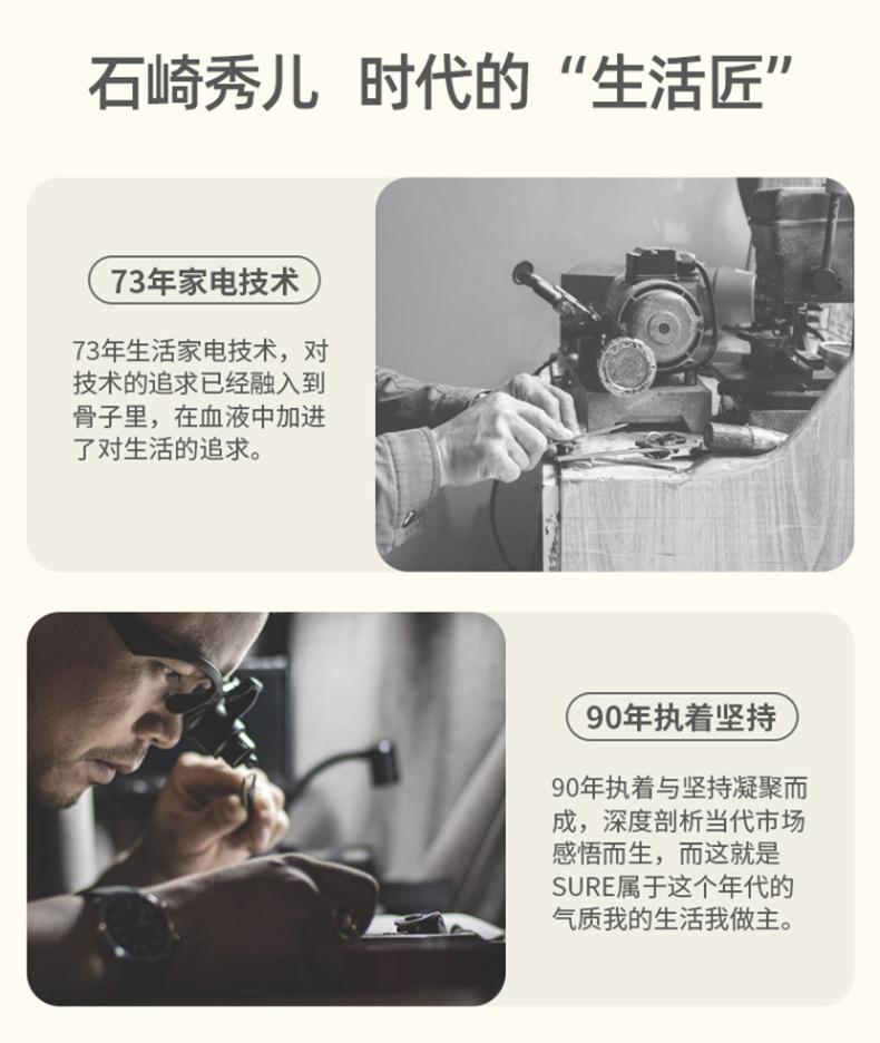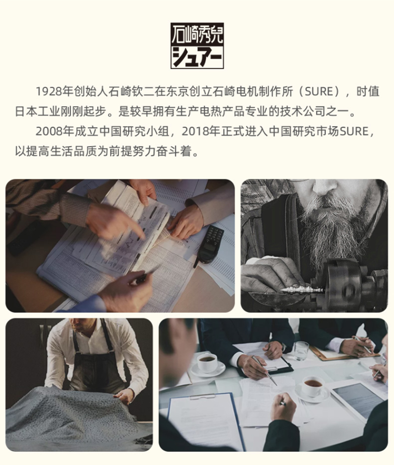 SURE/石崎秀儿创立于1928年日本东京,是日本拥有电热产品专业技术的企业之一。为日本铁道部及国防部等政府部门提供相关产品,与松下、东芝、日立均为战略合作伙伴,其电磁炉、电熨斗、面包机等产品,曾获得2016年日本生活家电大奖。