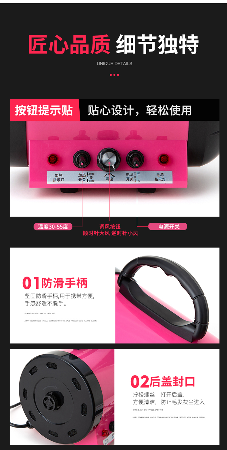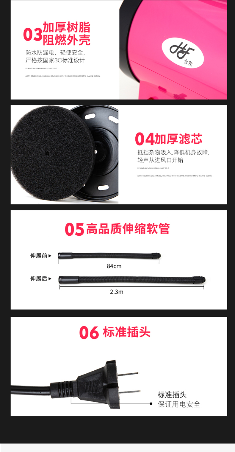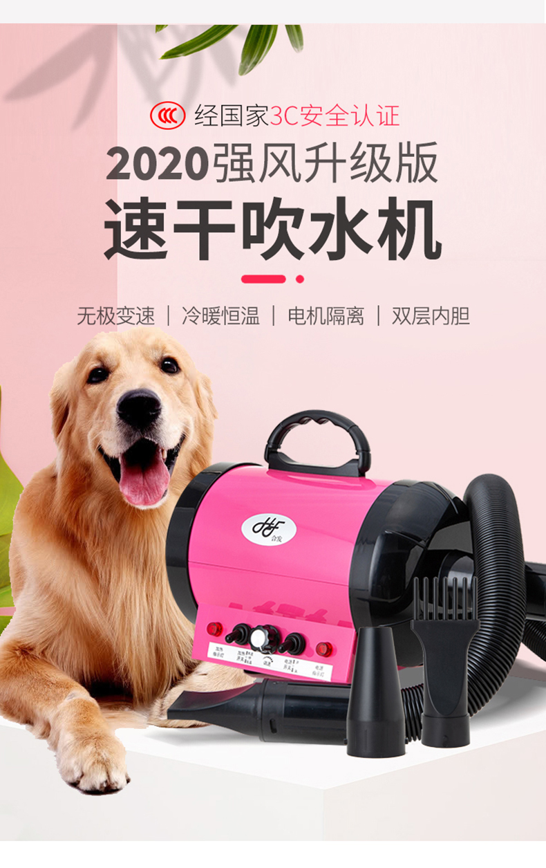 这款合发 猫狗宠物吹风机,是强风升级版,经过国家3C安全认证,使用安全放心。采用新一代涡轮采风系统,将气流集中,增加气压的作用,集中吹出来的风力更强大。