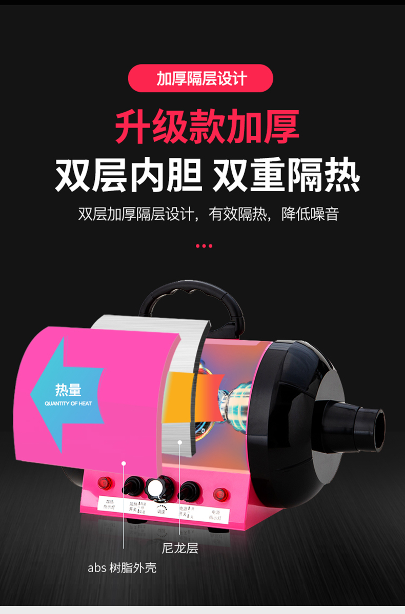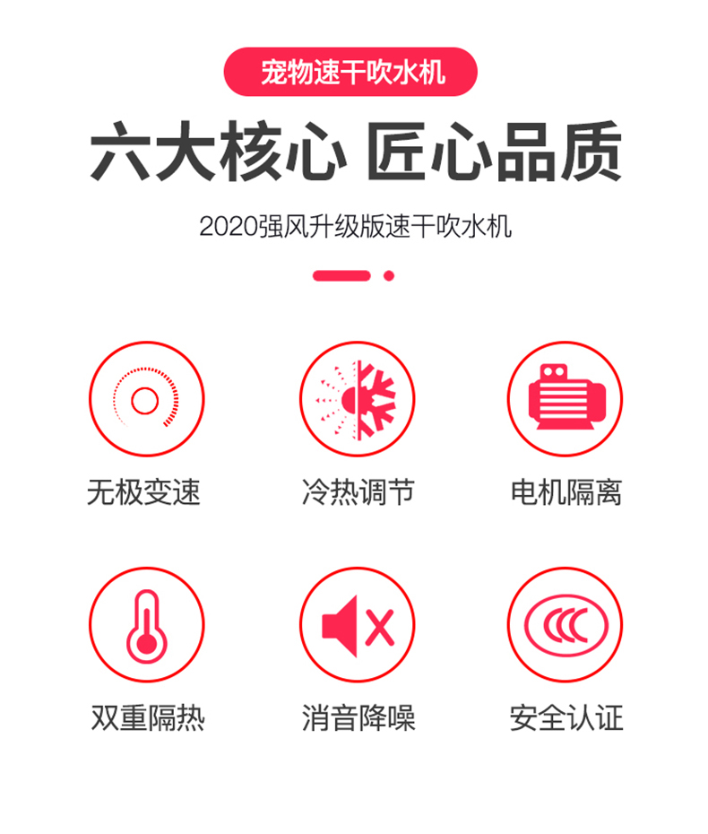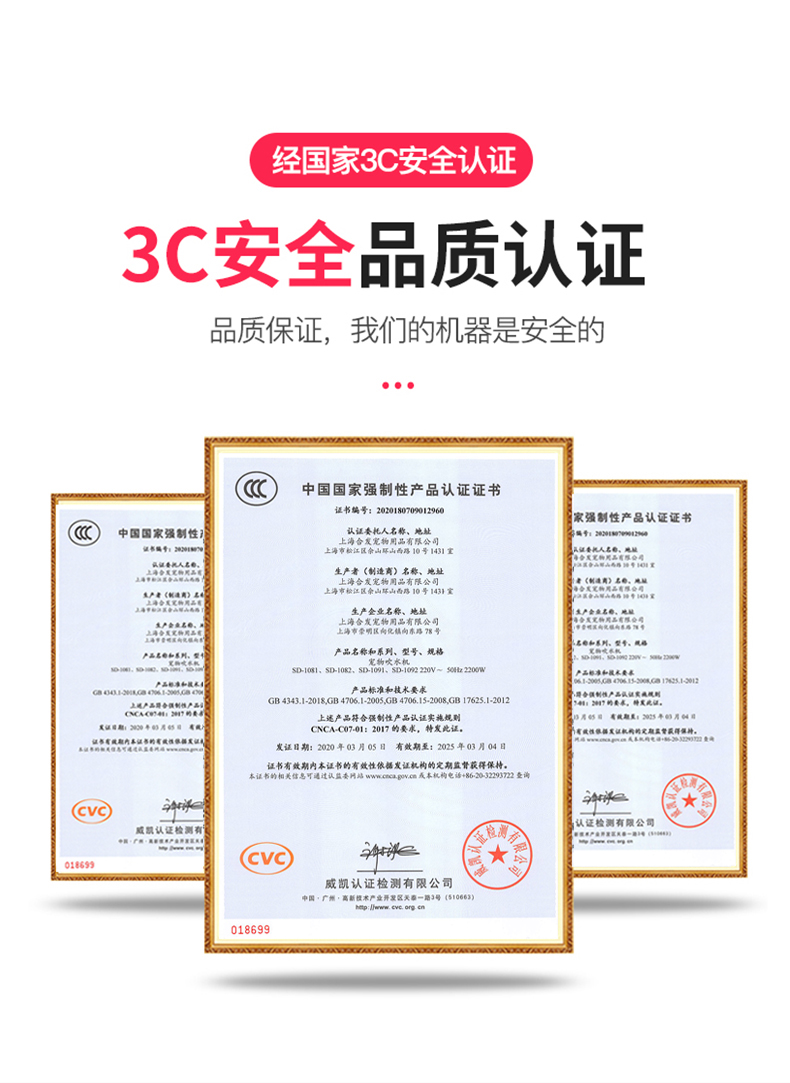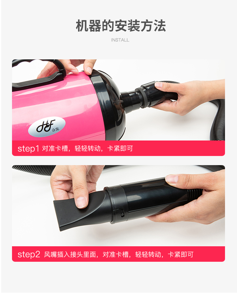 这款合发 猫狗宠物吹风机,是强风升级版,经过国家3C安全认证,使用安全放心。采用新一代涡轮采风系统,将气流集中,增加气压的作用,集中吹出来的风力更强大。