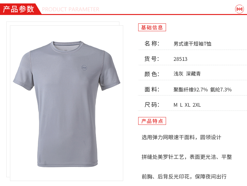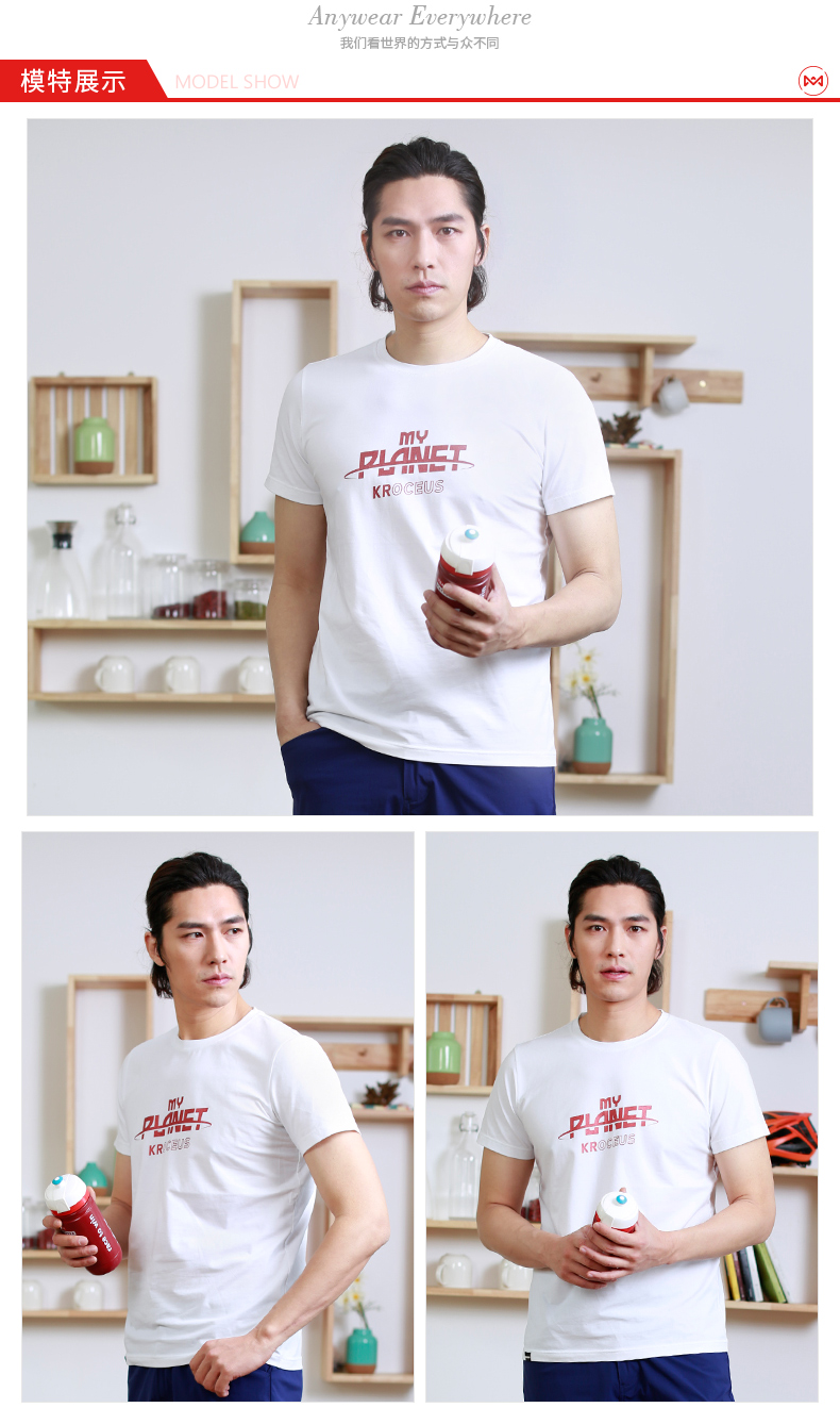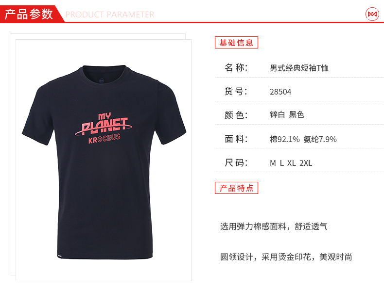 采用棉氨汗布面料(92.1%棉+7.9%氨纶弹性纤维),摸起来的手感柔软,亲肤性好,吸湿有弹性,上身不紧绷。