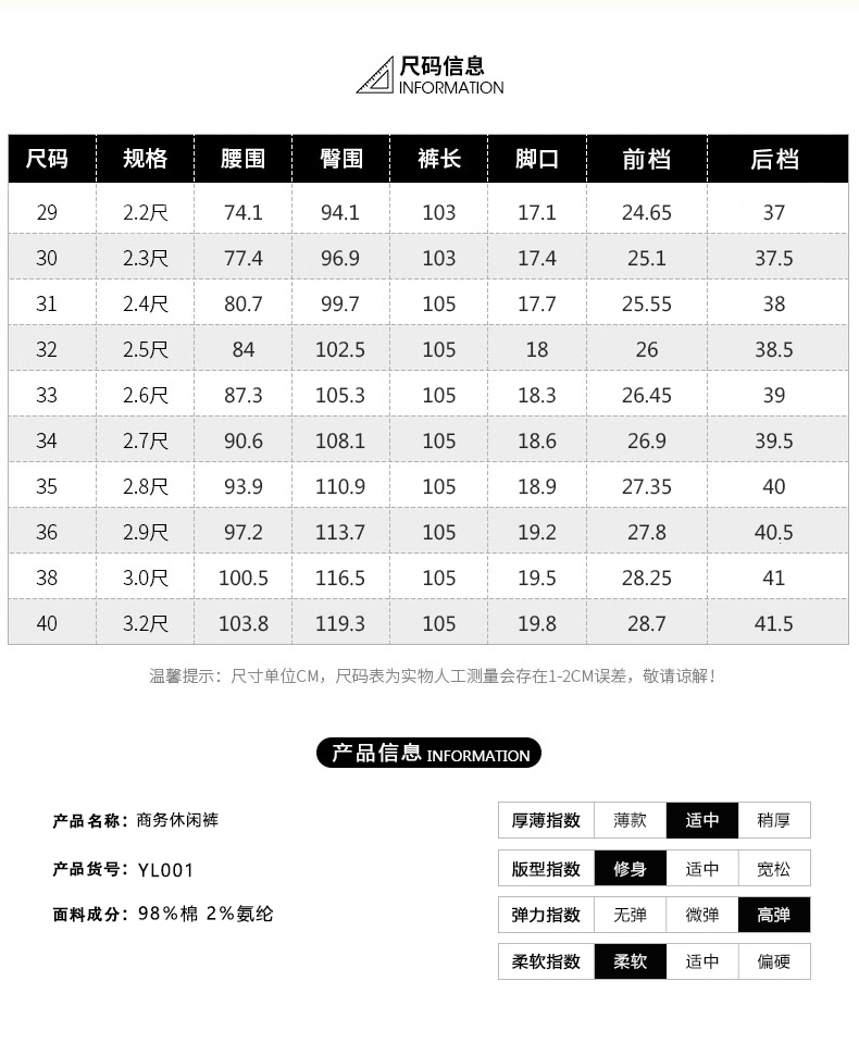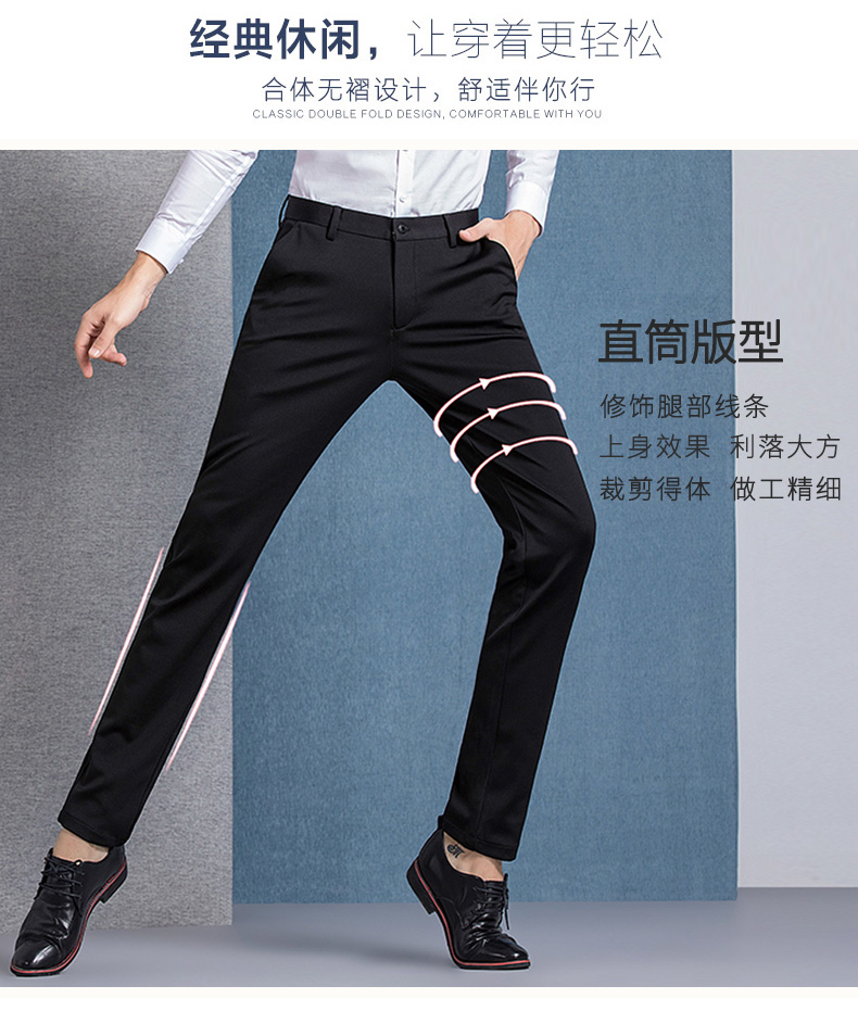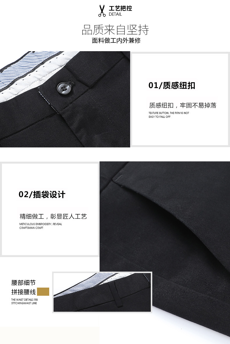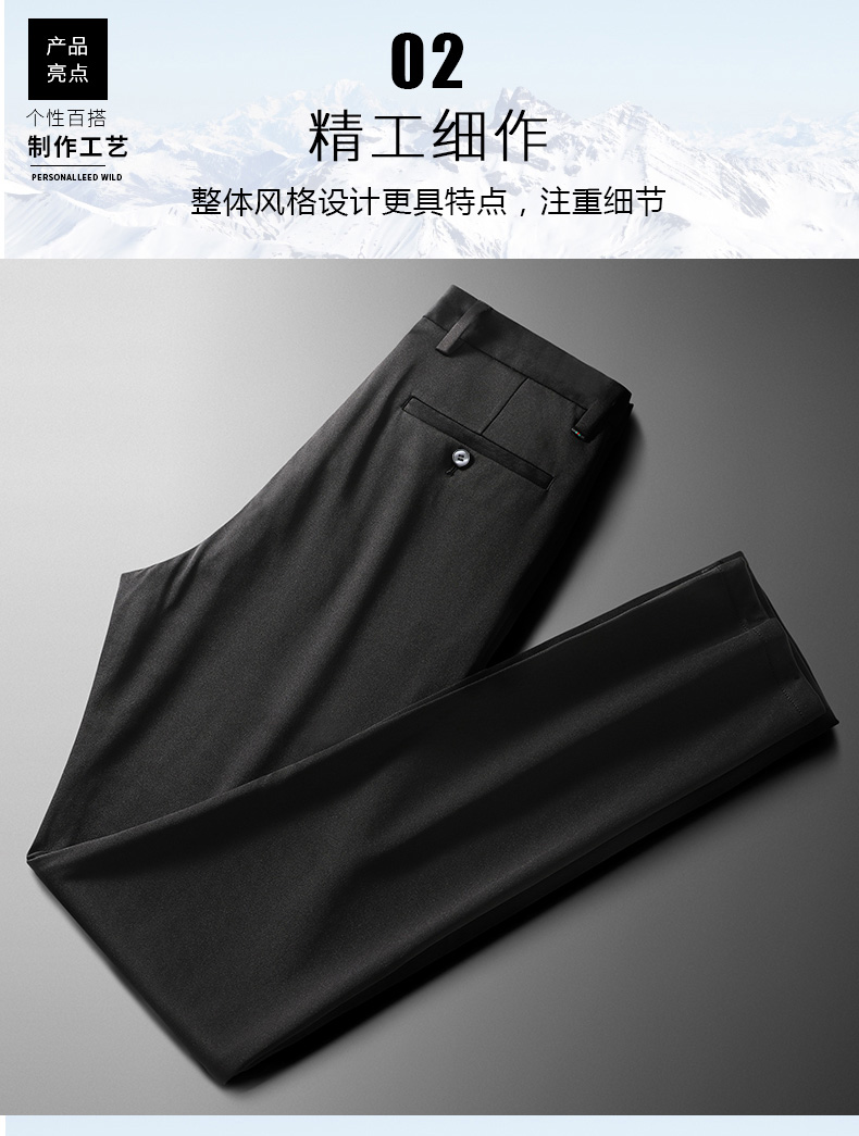 修身款式,利落板正。门襟处使用日本高品质YKK拉链,提拉顺畅,经久耐用;内里走线公正紧密,耐磨耐穿。经典直筒款式,日常休闲、商务场合都适合穿。