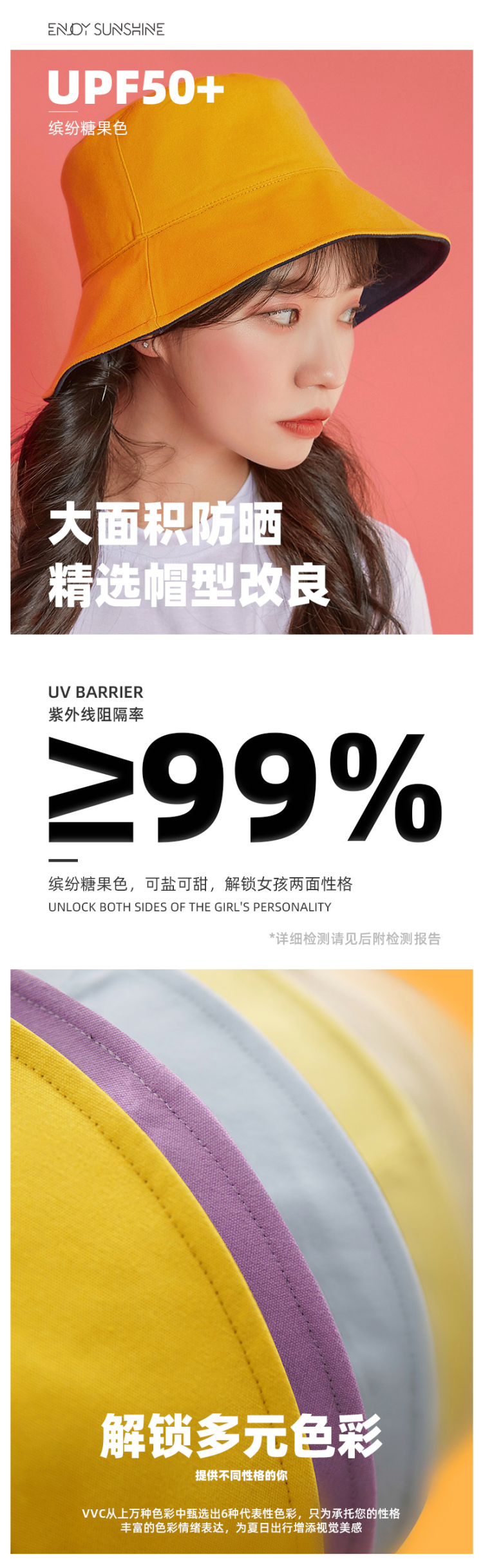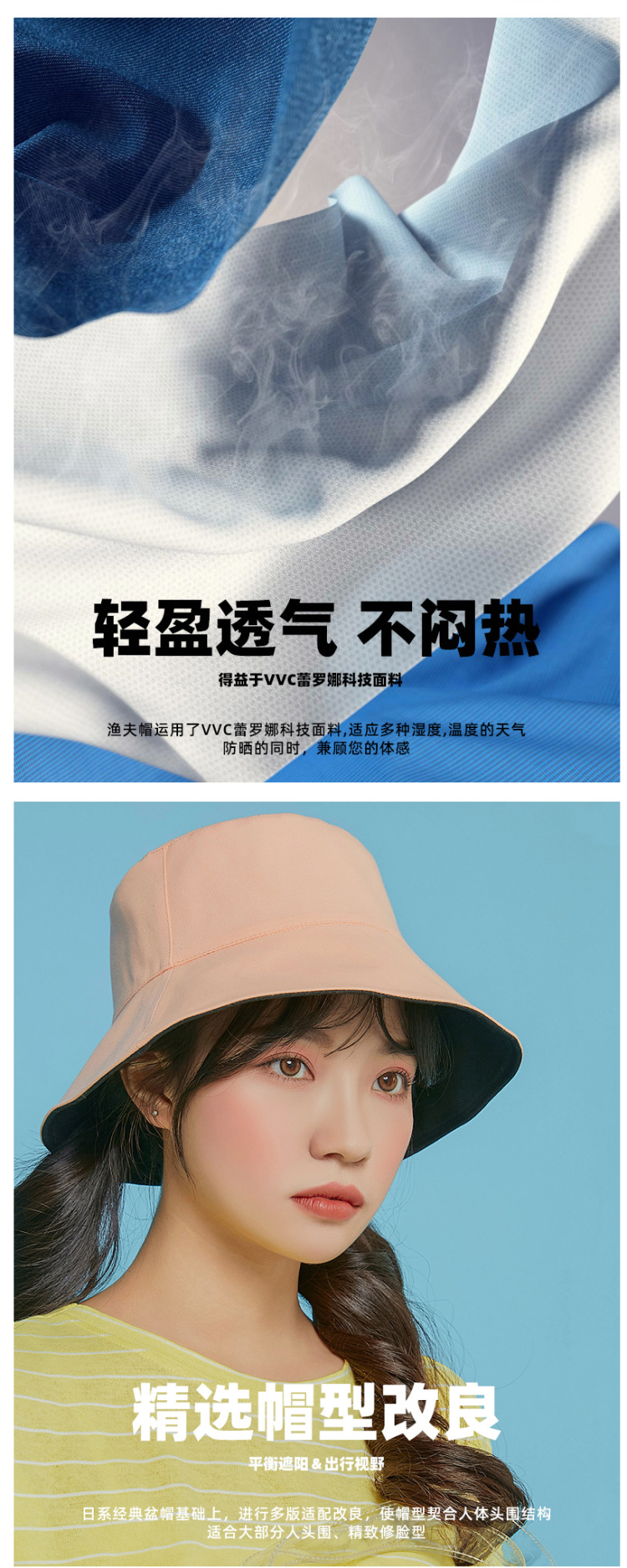 这款VVC女遮阳帽,是2020年的新款,前几天薇娅直播热推,渔夫帽款式,双面可戴,拥有6层防护,可达UPF 2000+防晒,是夏季必备品。