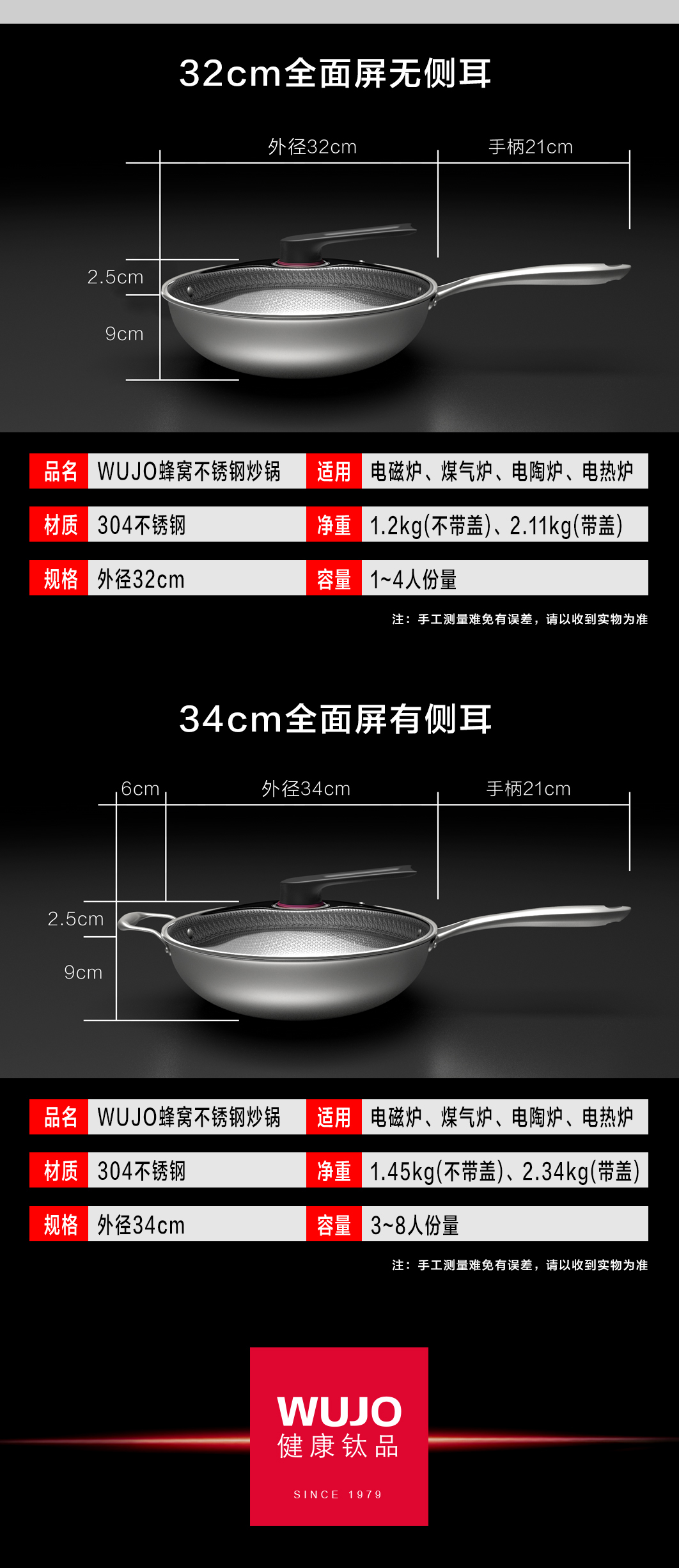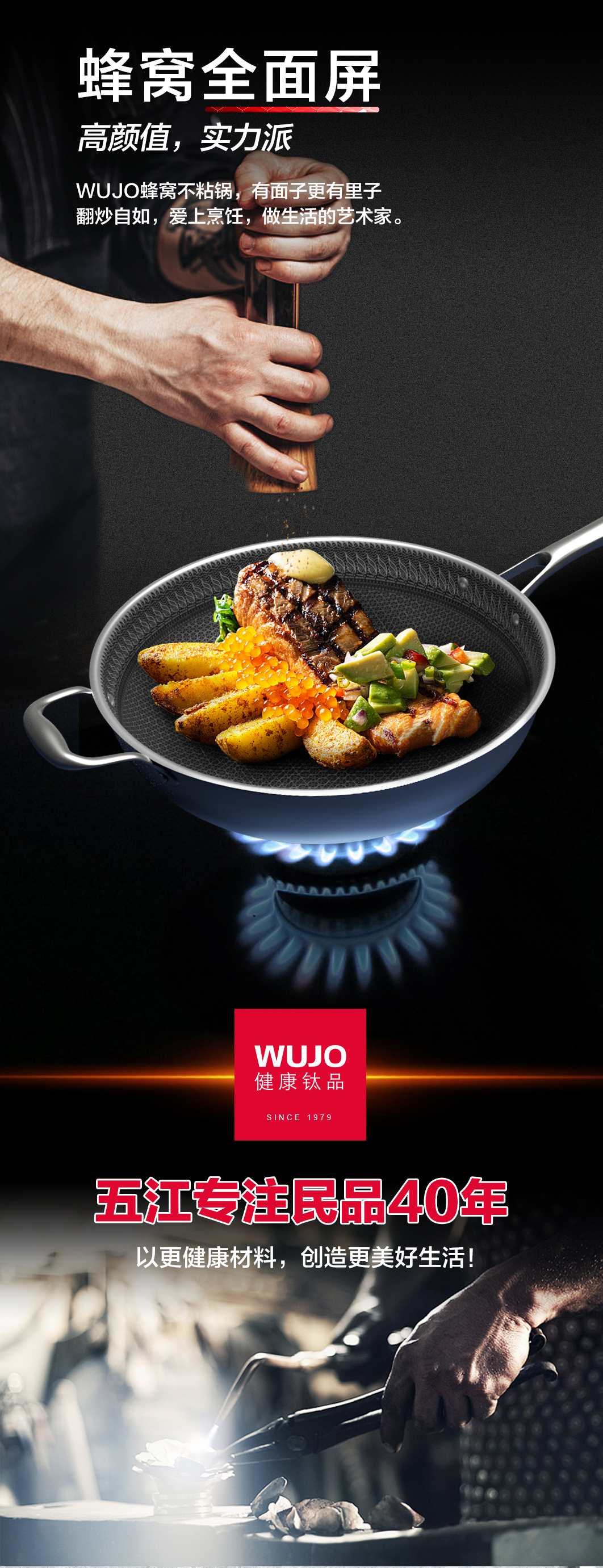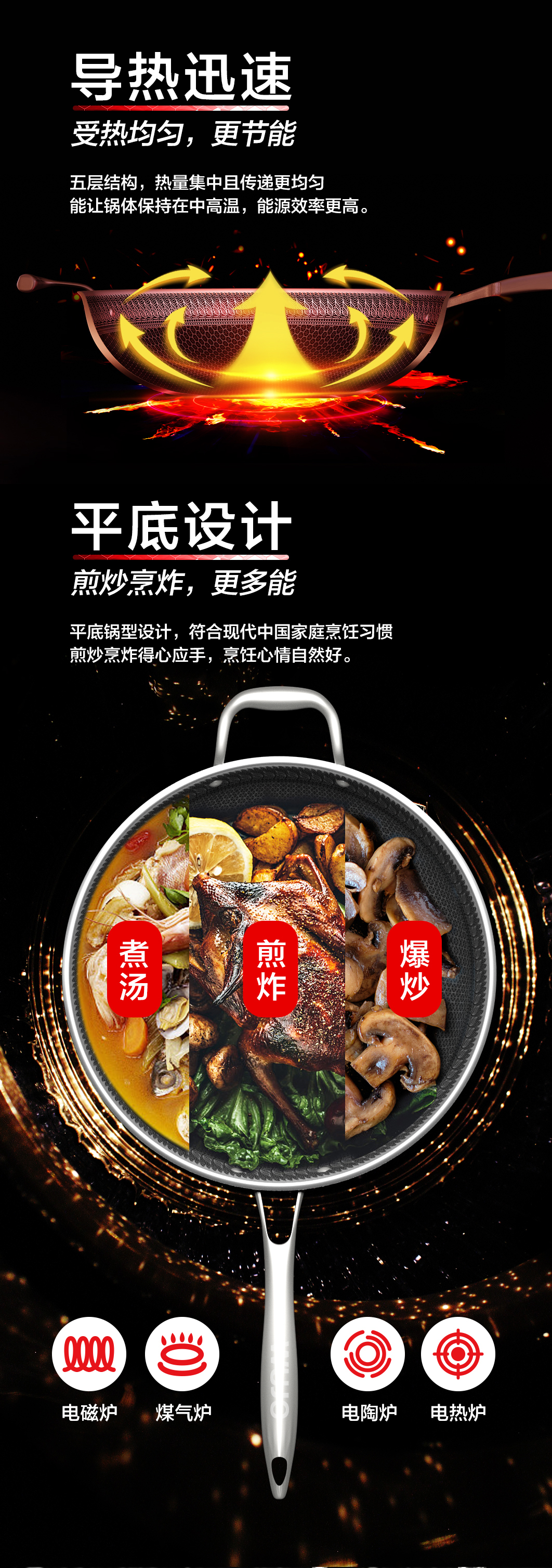 扁平锅底设计,不挑炉灶,燃气灶、电磁炉等都适用。9厘米锅深,平常煎炒蒸煮都能实现。把手与锅身为铆钉固定,不易藏污纳垢,兼顾耐用。中空防烫把手设计,拿握省力不烫手。