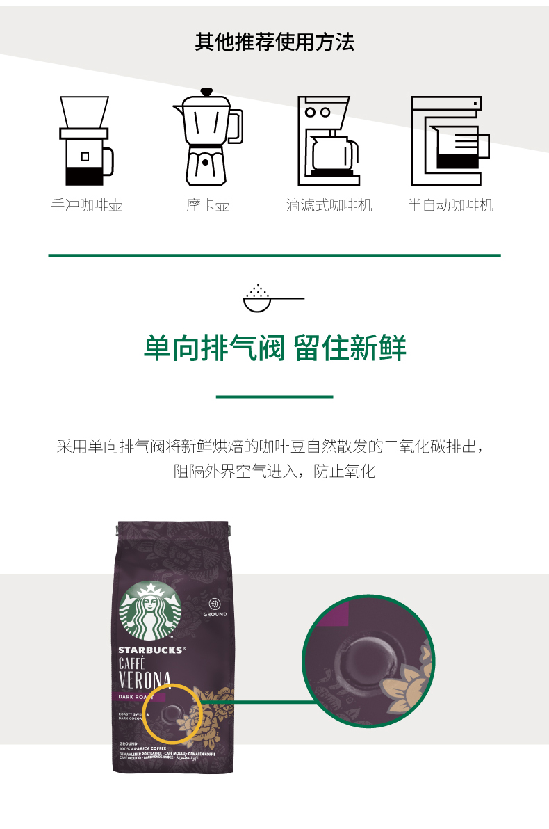 这款星巴克意式浓缩咖啡粉,美国原装进口,采用拉丁美洲的优质咖啡豆,搭配牛奶巧克力、肉桂、坚果、焦糖等辅料,经过长时间低温烘焙而成,充分释放出咖啡独有的香味,口感浓郁,加工是用水洗法或半水洗法。