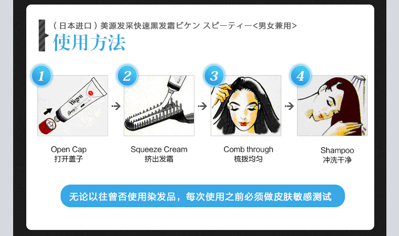 美源发采畅销亚洲百年,采用植物传统配方开发研制的染发霜,具有易涂抹均匀且不垂滴的优点,110年遮白染发技术,染色同时可有效遮盖白发。