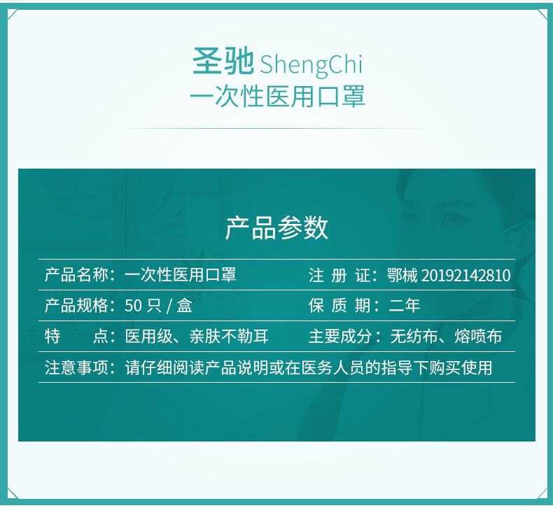 这款圣驰医用口罩,注册证号: 鄂械注准 20192142810,由仙桃市中意安全防护用品有限公司生产,采用吸湿透气无纺布、熔喷布过滤层和拒水pd无纺布3层结构,4D立体结构更贴合脸型,细菌过滤效率达99%,是一款防护非常严谨的口罩了。