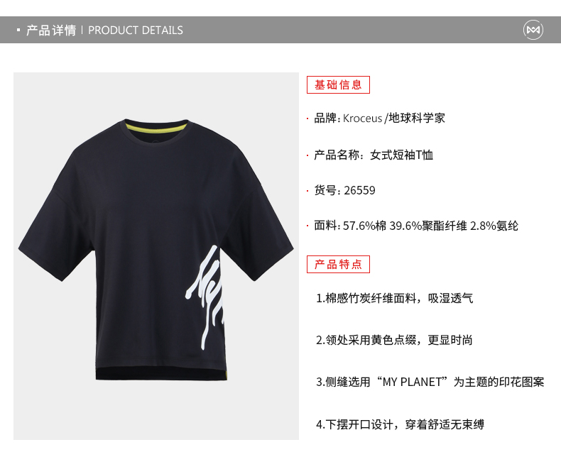 采用咖啡碳纤维面料,由57.6%棉+39.6%聚酯纤维+2.8%氨纶弹性纤维混纺而成,摸起来手感很柔软,亲肤性很好,同时速干吸湿排汗、抗菌除臭,带有弹性,上身不紧绷。还能抵抗UPF40+的紫外线,是最适合夏季运动时穿的T恤。