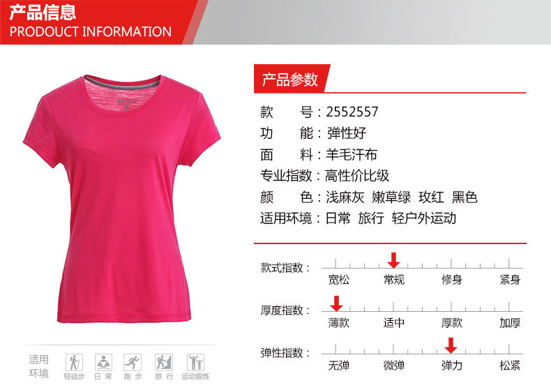 羊毛混纺T恤,有着很好的长久抑菌除臭的功效,特别适合爱出汗的人穿。