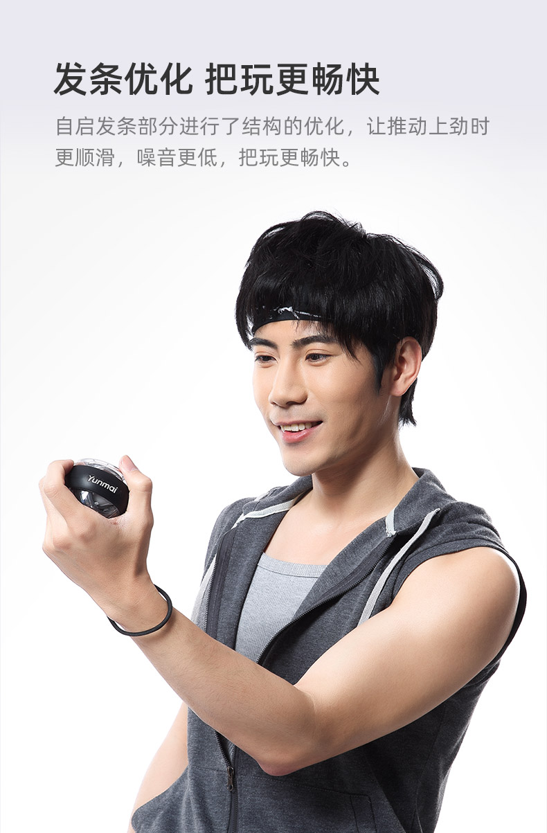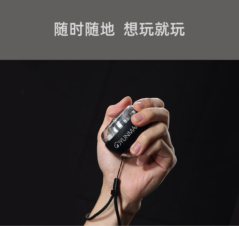 这款腕力球,锌合金电镀球心,重量适中,高稳定性美观又耐用,自启发条进行了结构优化,使用更顺畅,噪音更低,随着内部转芯速度的加快,灯会变得炫彩斑斓,增加了健身乐趣,附有专用腕绳,不会因为力度太大而甩出,更安全。