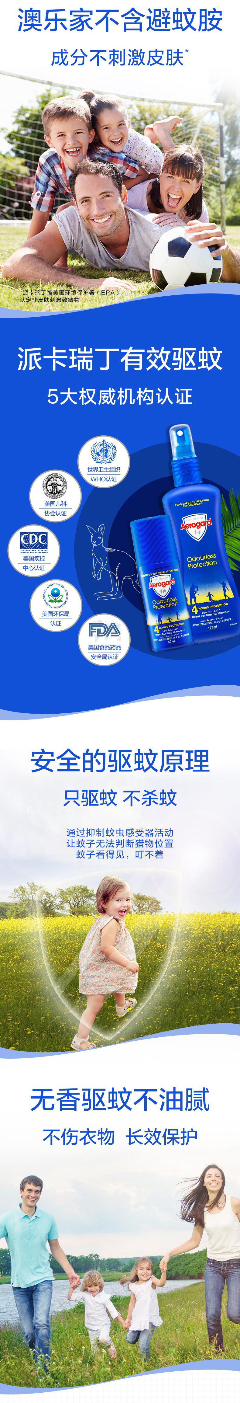这款Aerogard 儿童驱蚊水和走珠,均是澳洲原装进口,适合1岁以上儿童使用,驱蚊水使用前请先摇匀,在距离15-20cm处,可直接喷在暴露的皮肤上,走珠是直接在皮肤上滚动即可,使用10.3%埃卡瑞丁(派卡瑞丁)作为驱蚊成份,无味,不油腻,驱蚊效果4小时,对苍蝇、白蛉以及其他虫子同样有效。