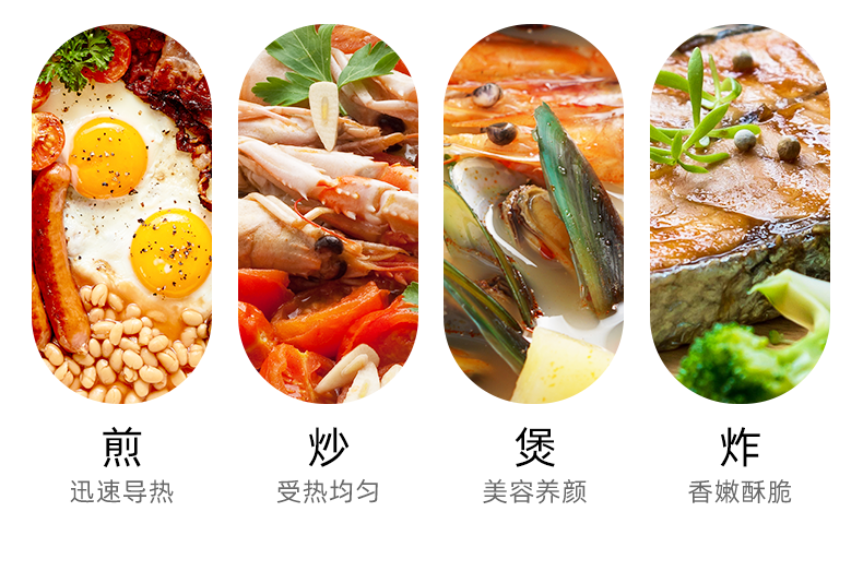 多层复合锅底,煤气炉、电磁炉、电陶炉、卤素炉、电炉这些热源都能用,还能直接放进烤箱,可承受最高260℃,锅内容量2.8L。