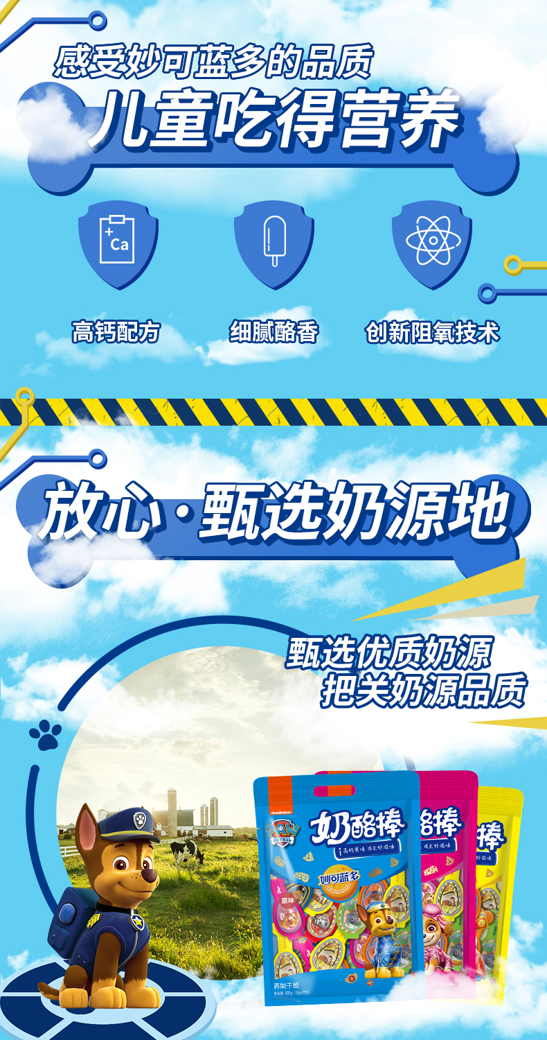 这款奶酪棒获得了汪汪队立大功的正版授权,包装可爱又童趣,选用优质奶源制作,高钙配方,专为儿童设计研发,口味香醇浓郁,采用先进的阻氧技术,锁住浓郁奶香,提升柔和口感,独立小包装,1次1根,食用方便。