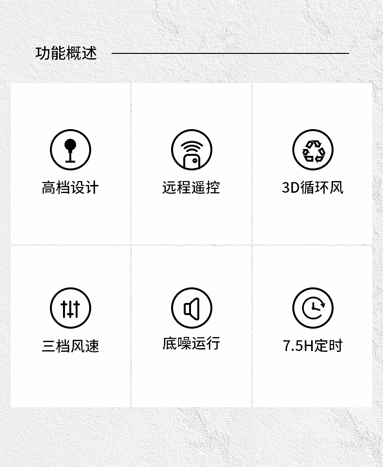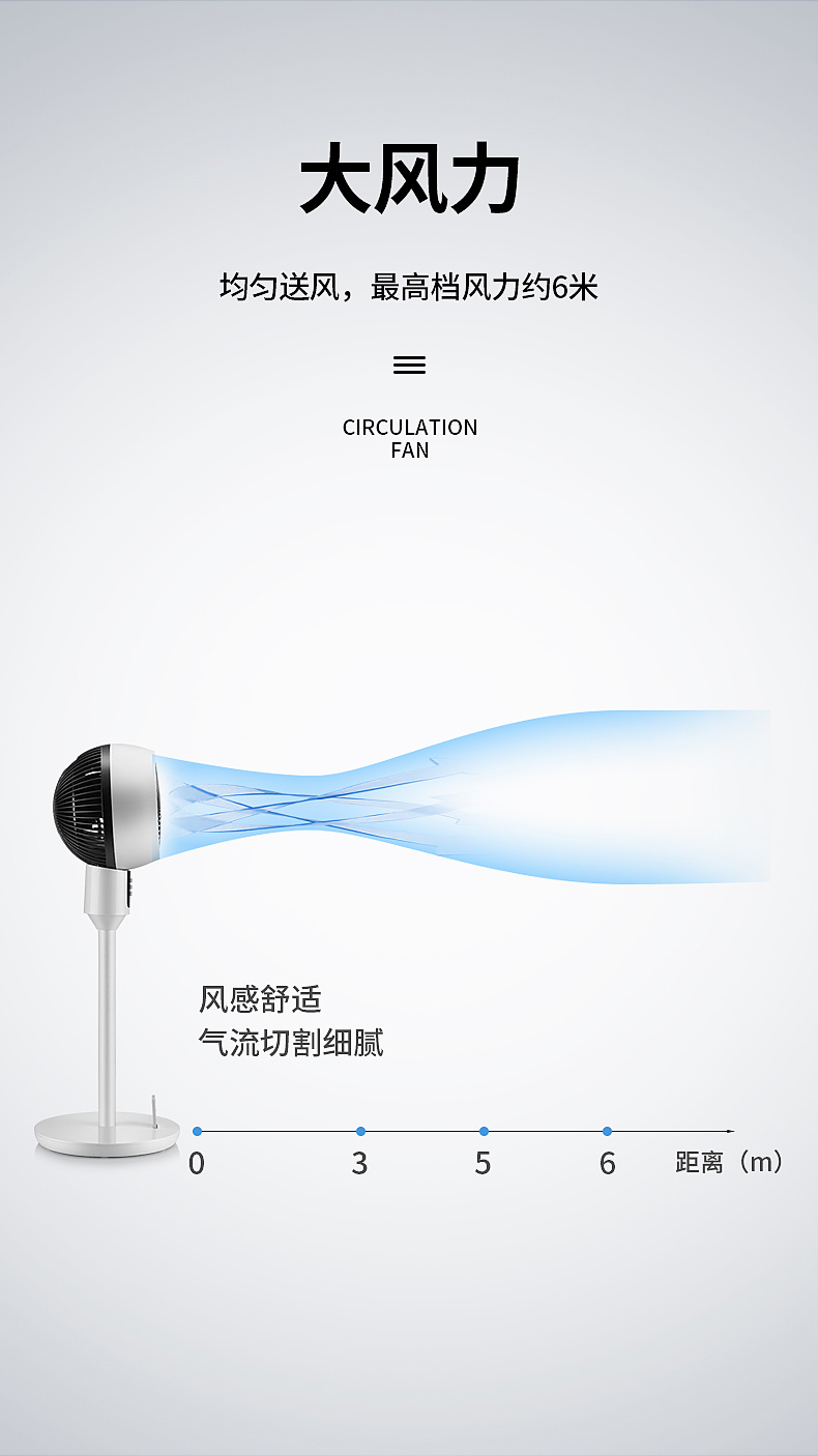 作用原理:普通风扇是单纯的利用叶片快速转动,使风扇面前的空气快速流动,使人体表面水分蒸发,吸收热量,从而让人体感到凉爽;空气循环扇主要作用是将室内空气形成对流循环,以合理的空气流向达到平衡温度的效果。