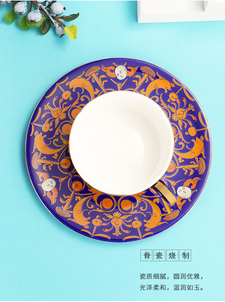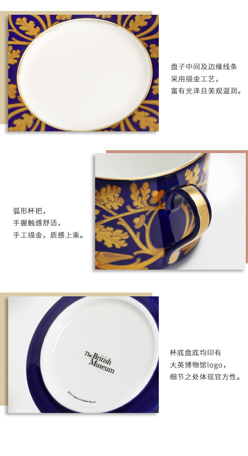 这款马约里卡复古咖啡杯,骨瓷烧制,圆润优雅,光泽柔和,温润如玉。盘子中间及边缘线条采用手工描金工艺,高端大气。