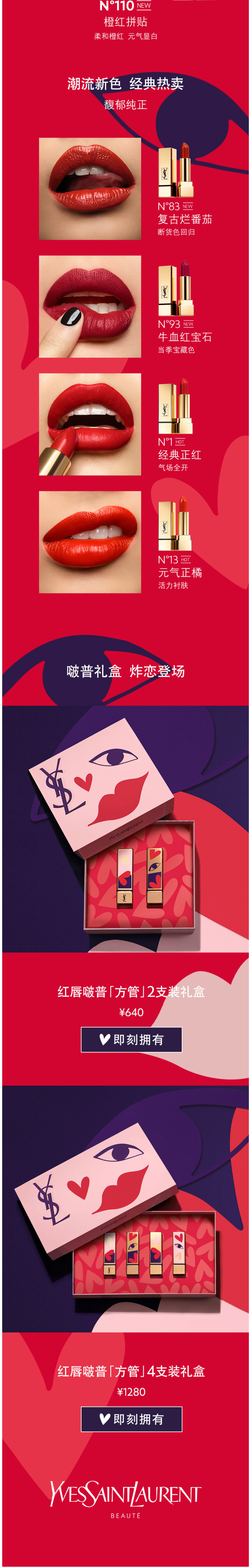 这款是圣罗兰经典的YSL方管系列,妆感偏雾面但不拔干,上色饱和,能保持双唇8小时的滋润,配合正式场合的优雅晚装,还是日常通勤的时尚便服等,多款颜色都能完美配合不同形象。